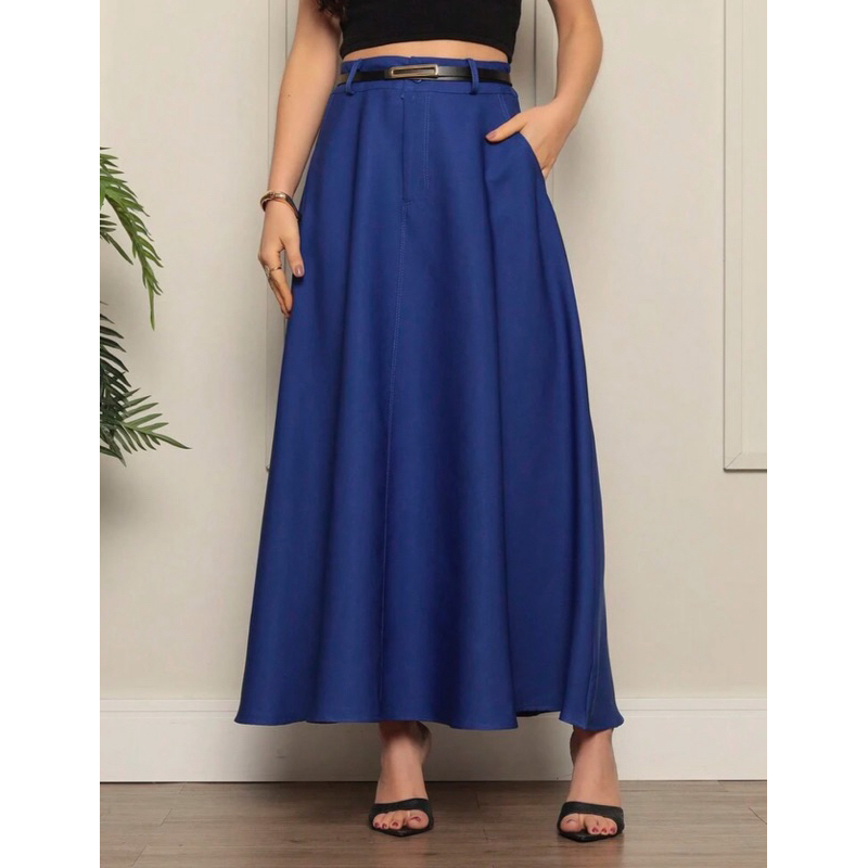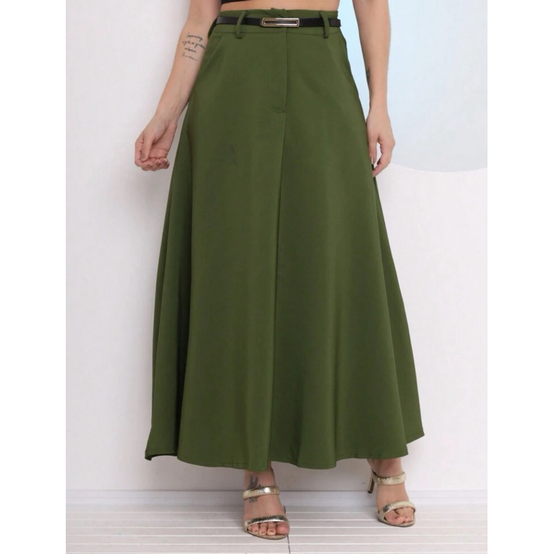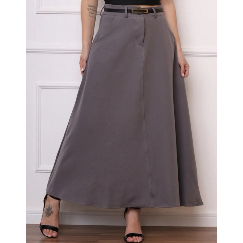 Saia Longa Feminina Alfaiataria Moda Evangélica Casual Básica Inverno Cintura Alta