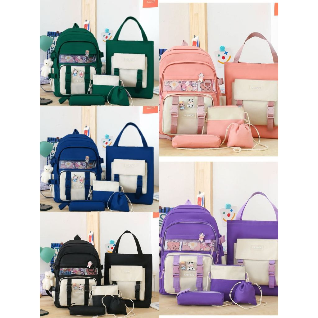 Kit Mochila Feminina Masculina Para Escolar Viajar Estilo Casual Kpop Multiuso Com Grande Capacidade