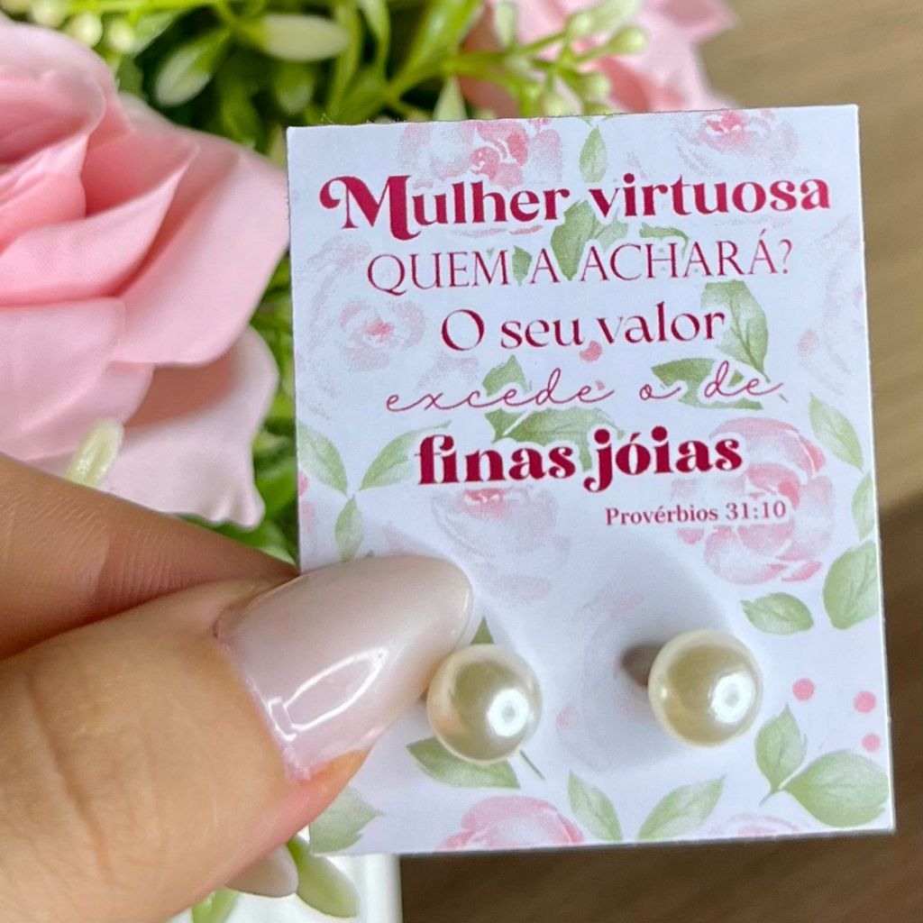 50 Brincos De Pérola E 50 Tags Mulher Virtuosa Lembrancinha Mimo Mulheres Mães