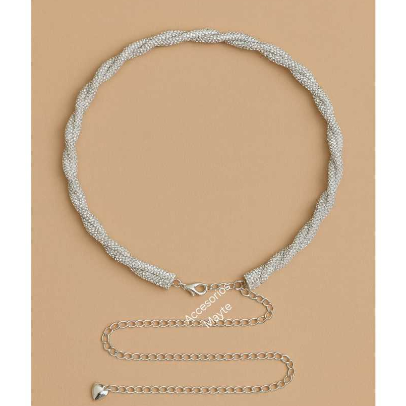 Cinto Feminino de Strass com Corrente Torcido Moda Feminina