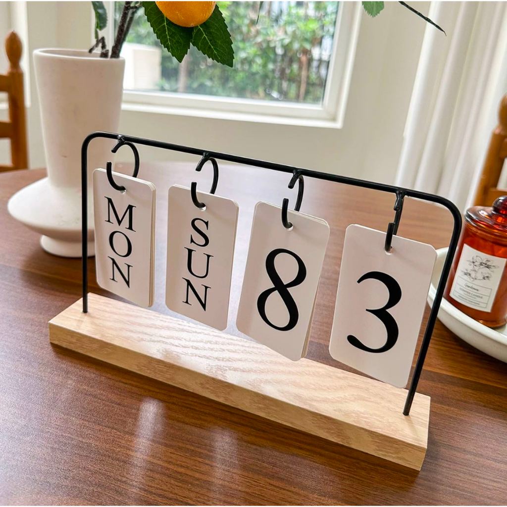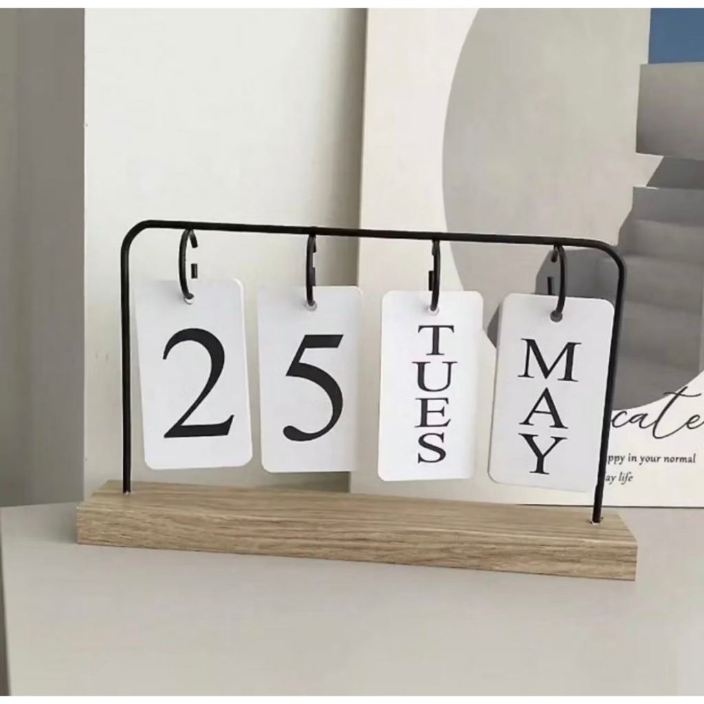 Calendário de Mesa Decorativo com Plaquinhas Preto/Dourado Permanente Escritório