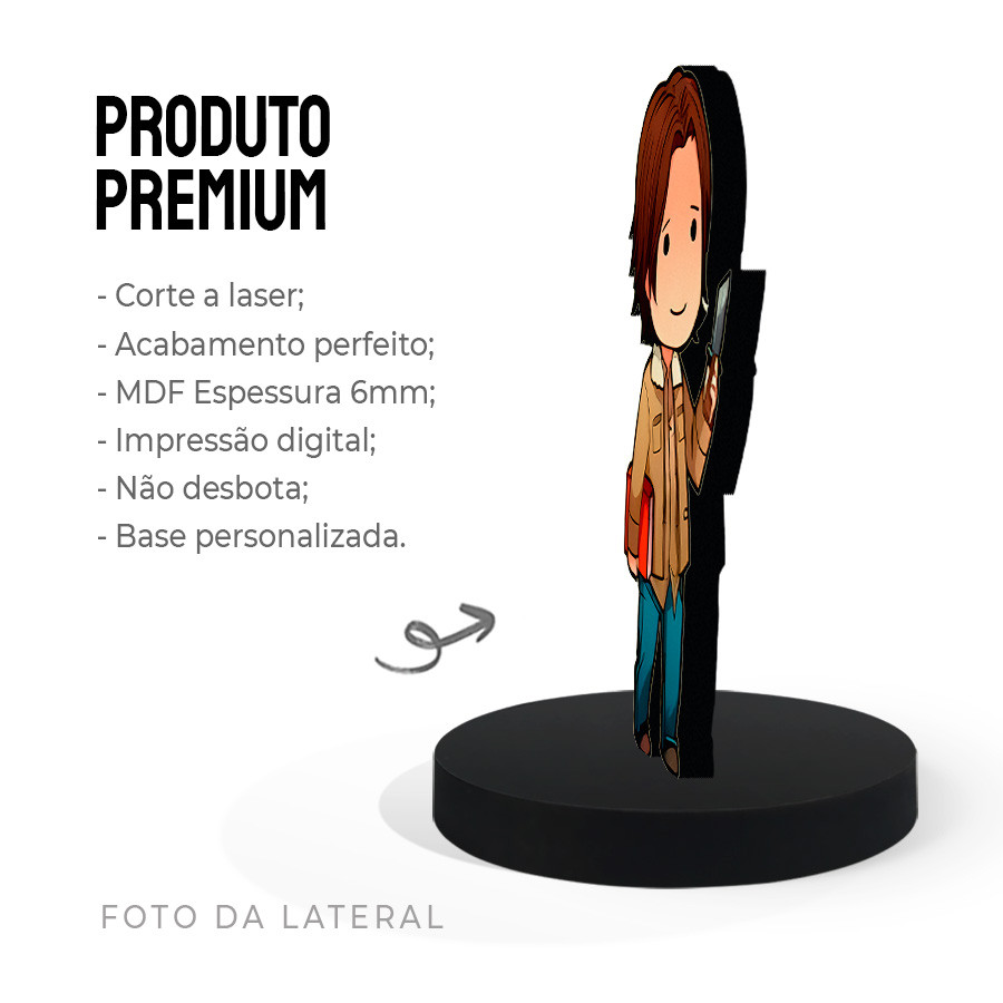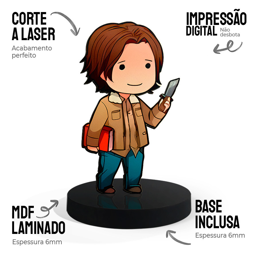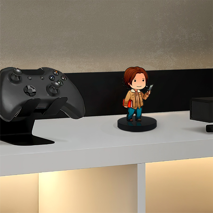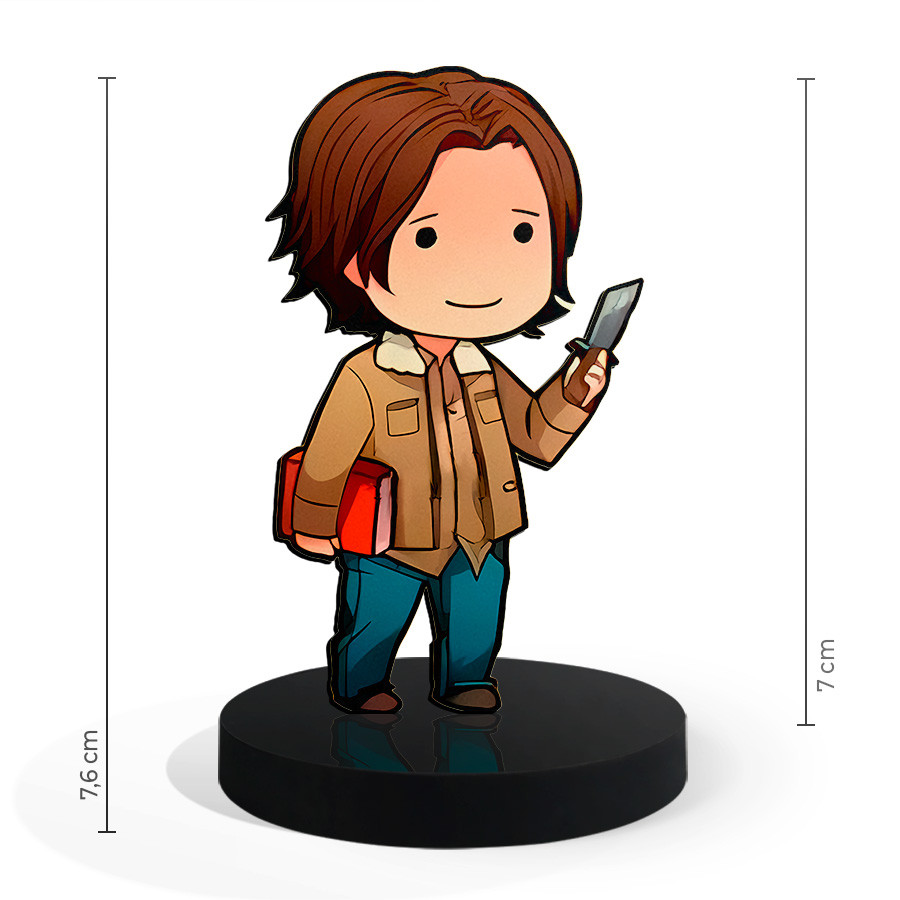 Totem Pequeno Boneco Sam Winchester Supernatural 7cm + Base
