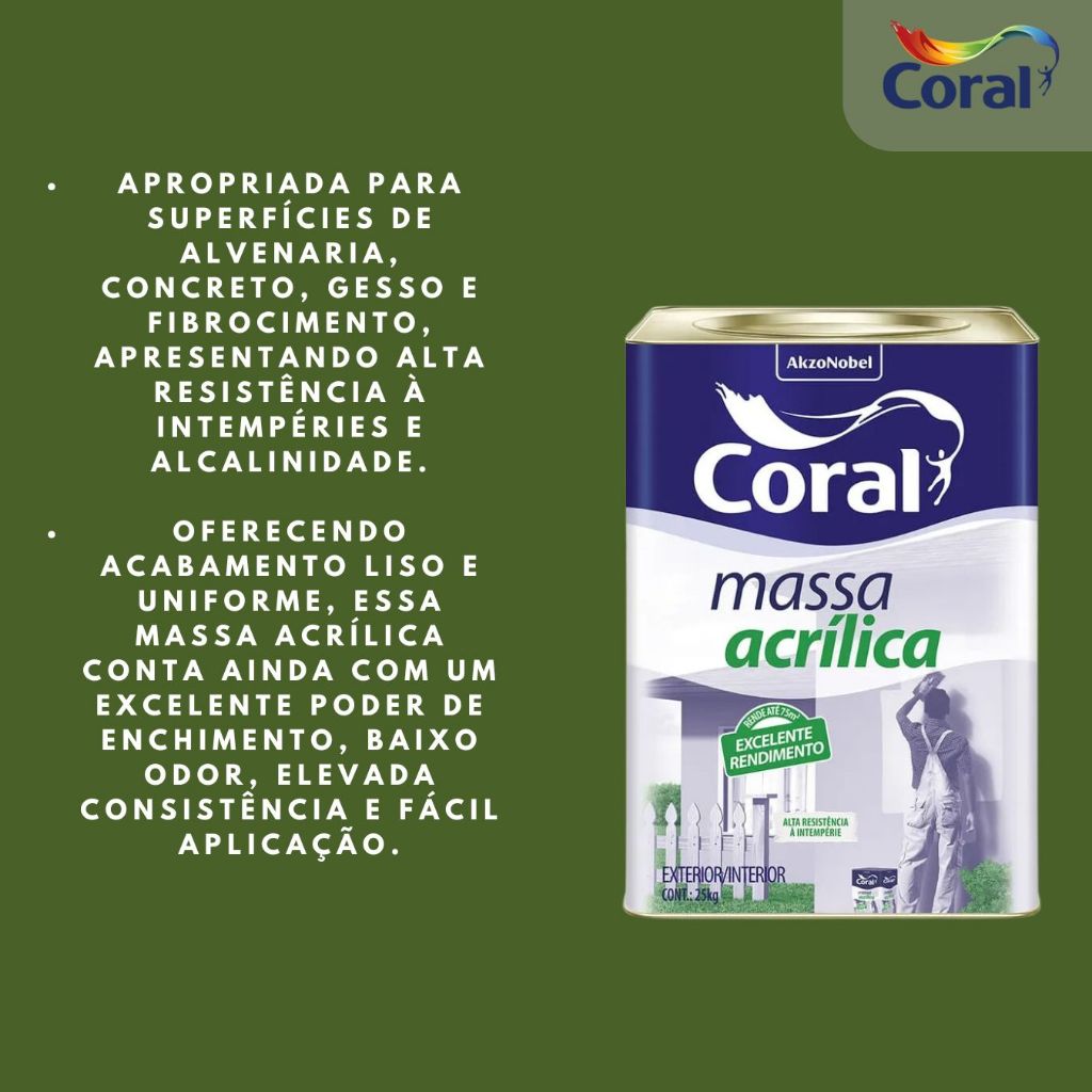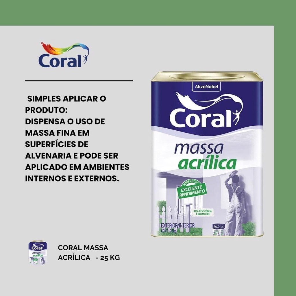 Massa Acrílica P/ Paredes Coral Branca 25kg