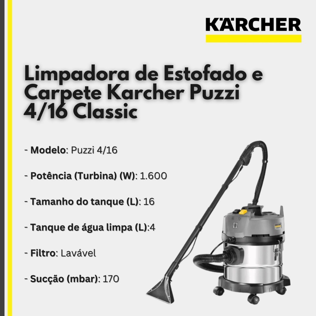 Limpadora De Estofados Puzzi 4/16 Alumínio Karcher