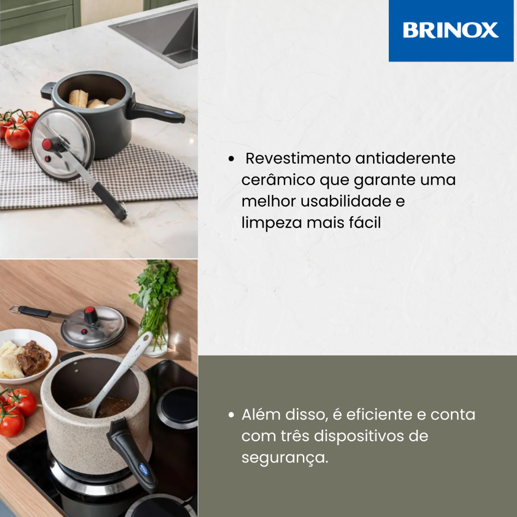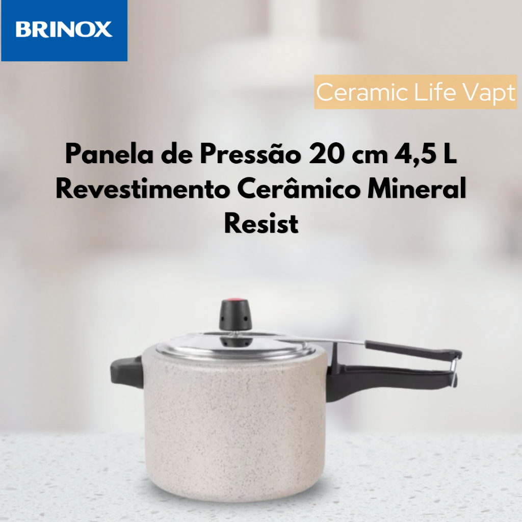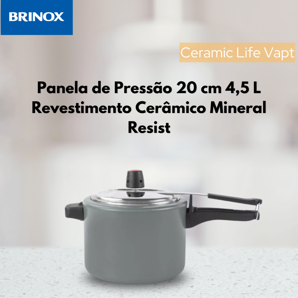 Panela De Pressão 20 Cm 4,5 L Revestimento Cerâmico Mineral Resist Brinox