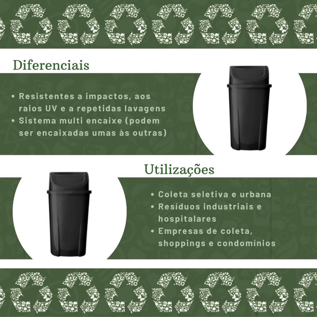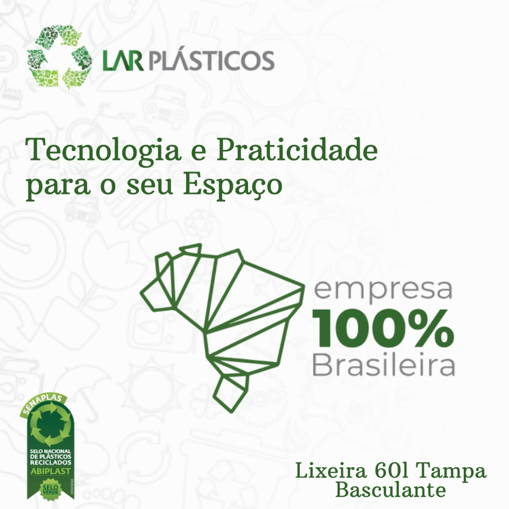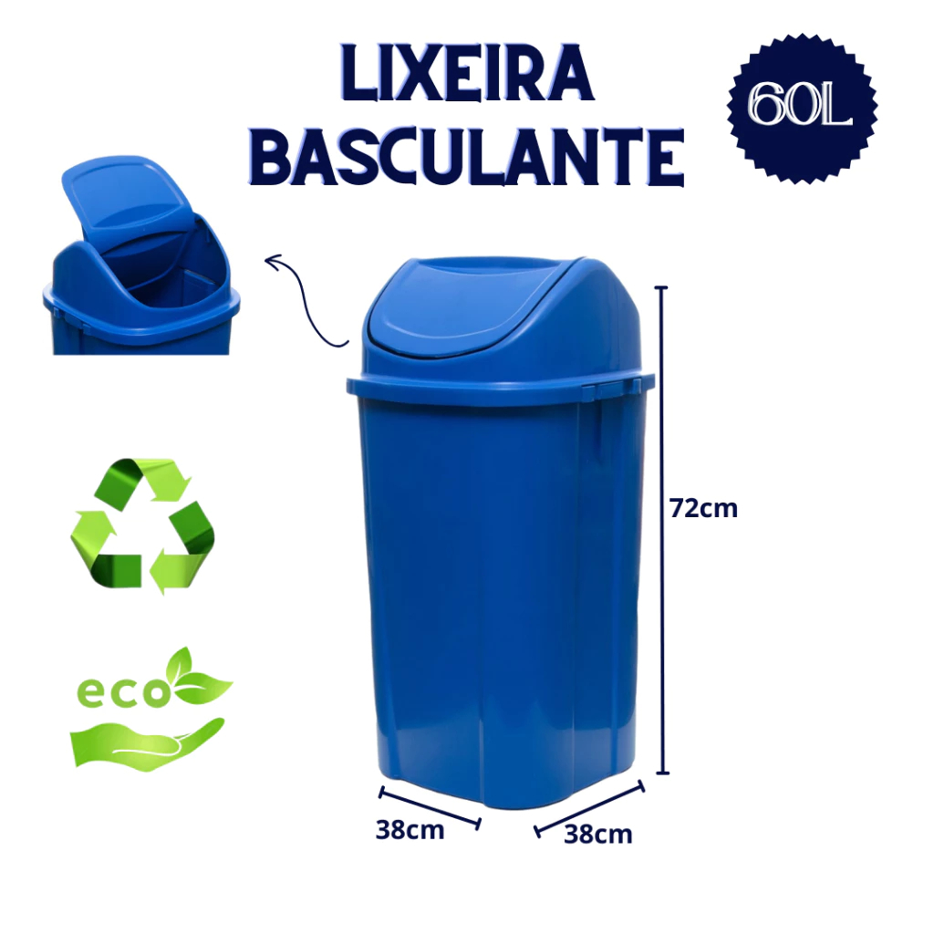 Lixeira Reforçada Basculante de 60 Litros Vai e Vem Cozinha Escritório Salas Áreas de Lazer
