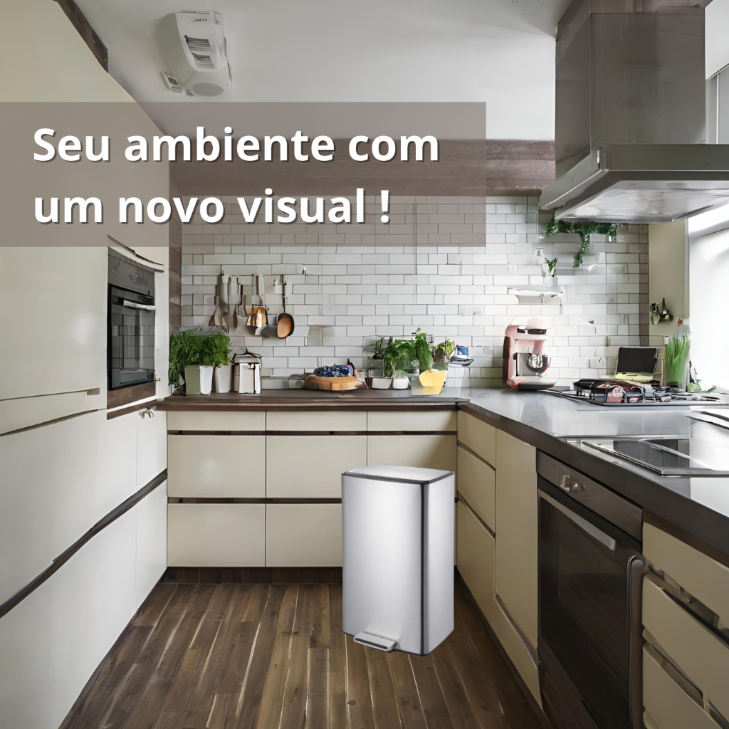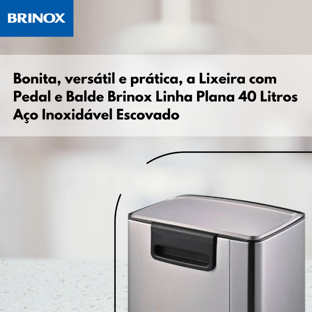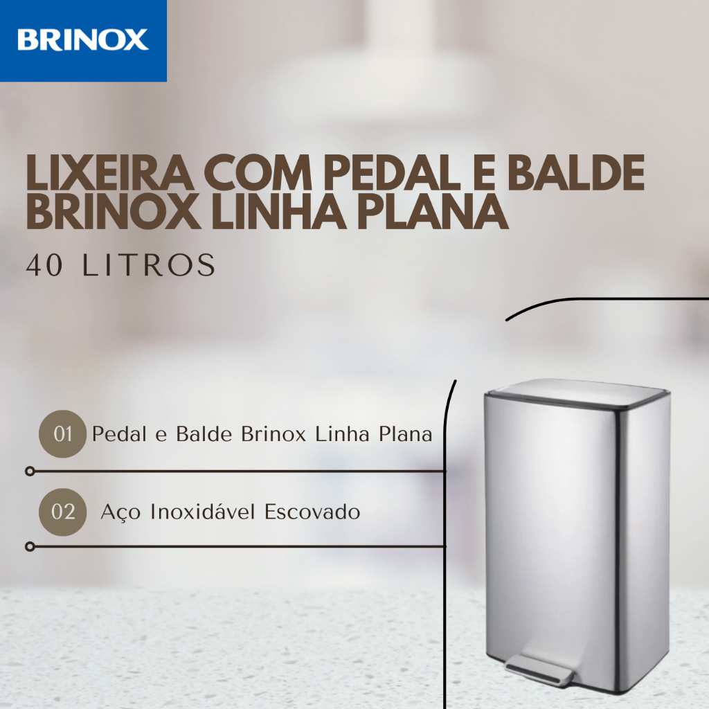 Lixeira De Inox C/ Pedal E Balde Plana 40 Litros - Brinox