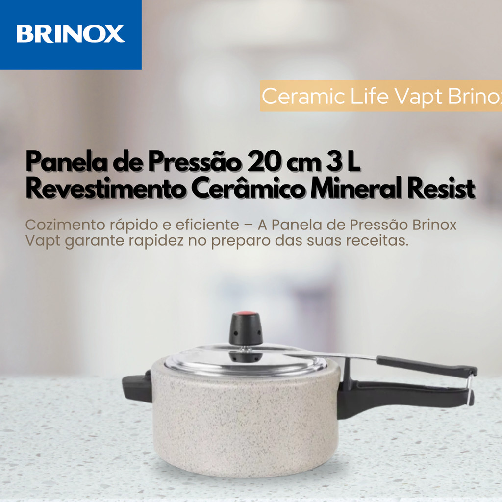 Panela De Pressão Ceramic Life Vapt 20cm 3,0l Brinox
