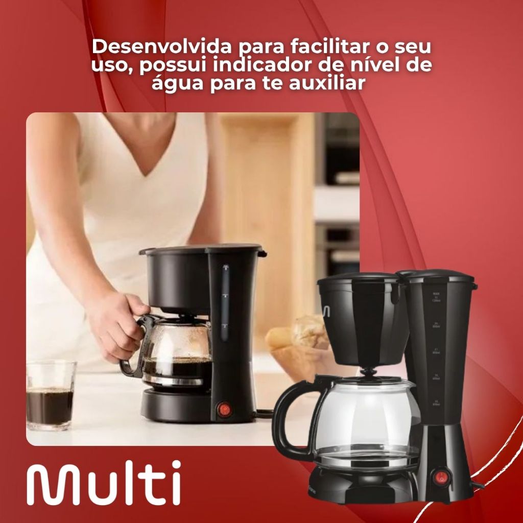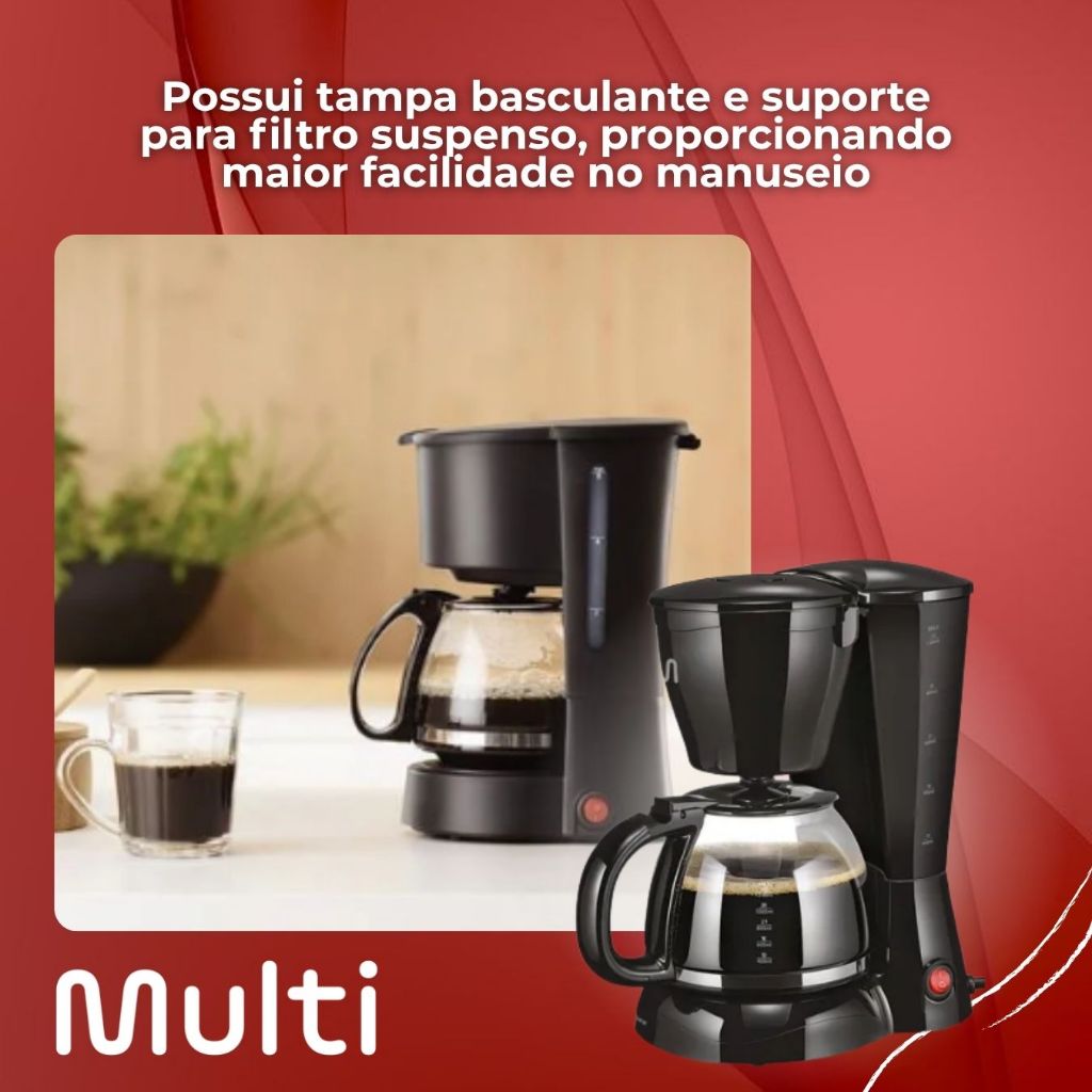 Cafeteira Elétrica 127V C/ Tampa Basculante Econômica Serve 32 Xícaras Café 800w Multi - Go037 Preto
