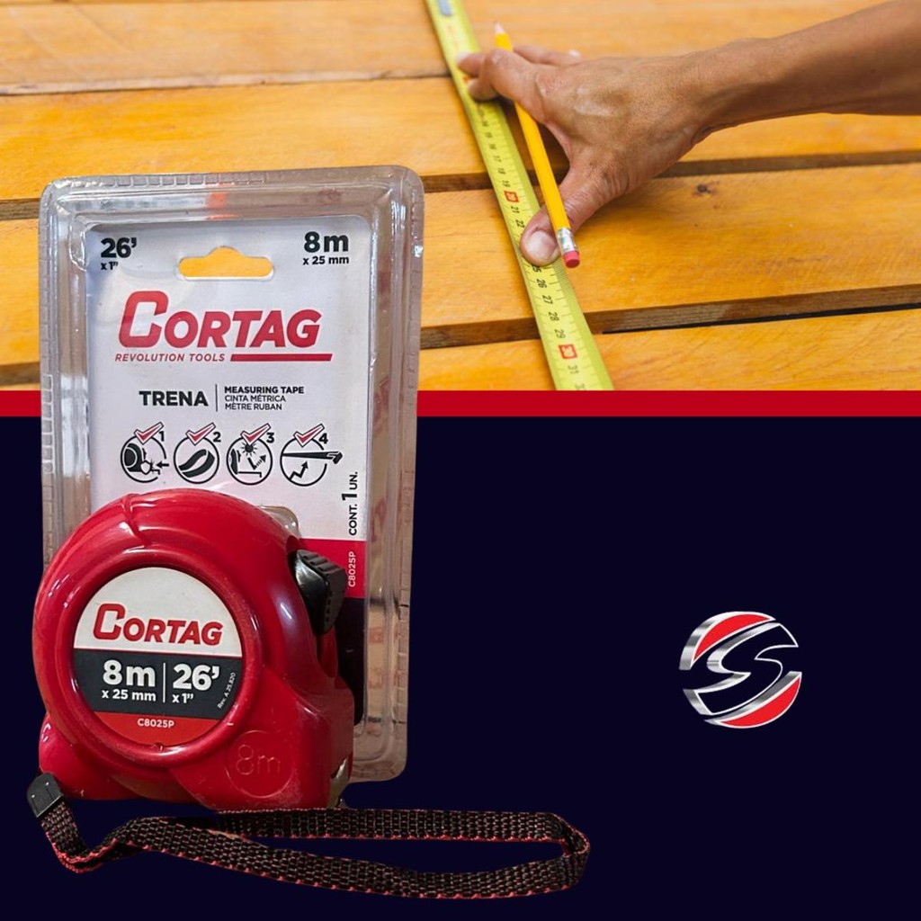 Trena 8m X 25mm Fita Aço Metrica Abs Cortag Profissional