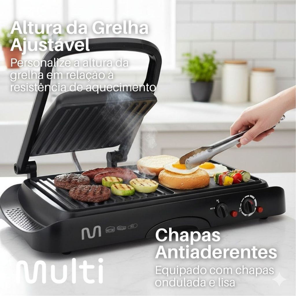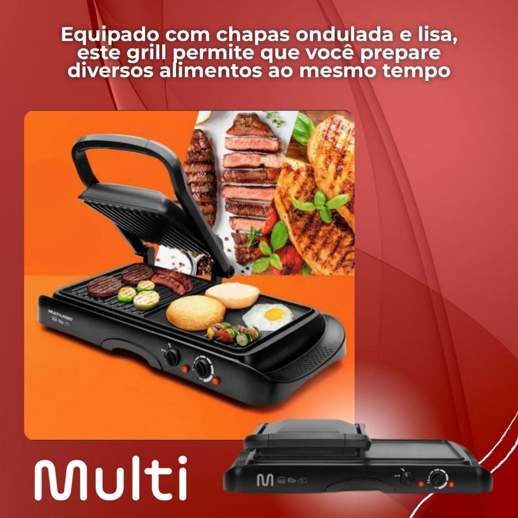 Chapa Grill 2 em 1 Chapas Flutuante e Lisa Churrasco Grelha Misteira Preto Multilaser Multi