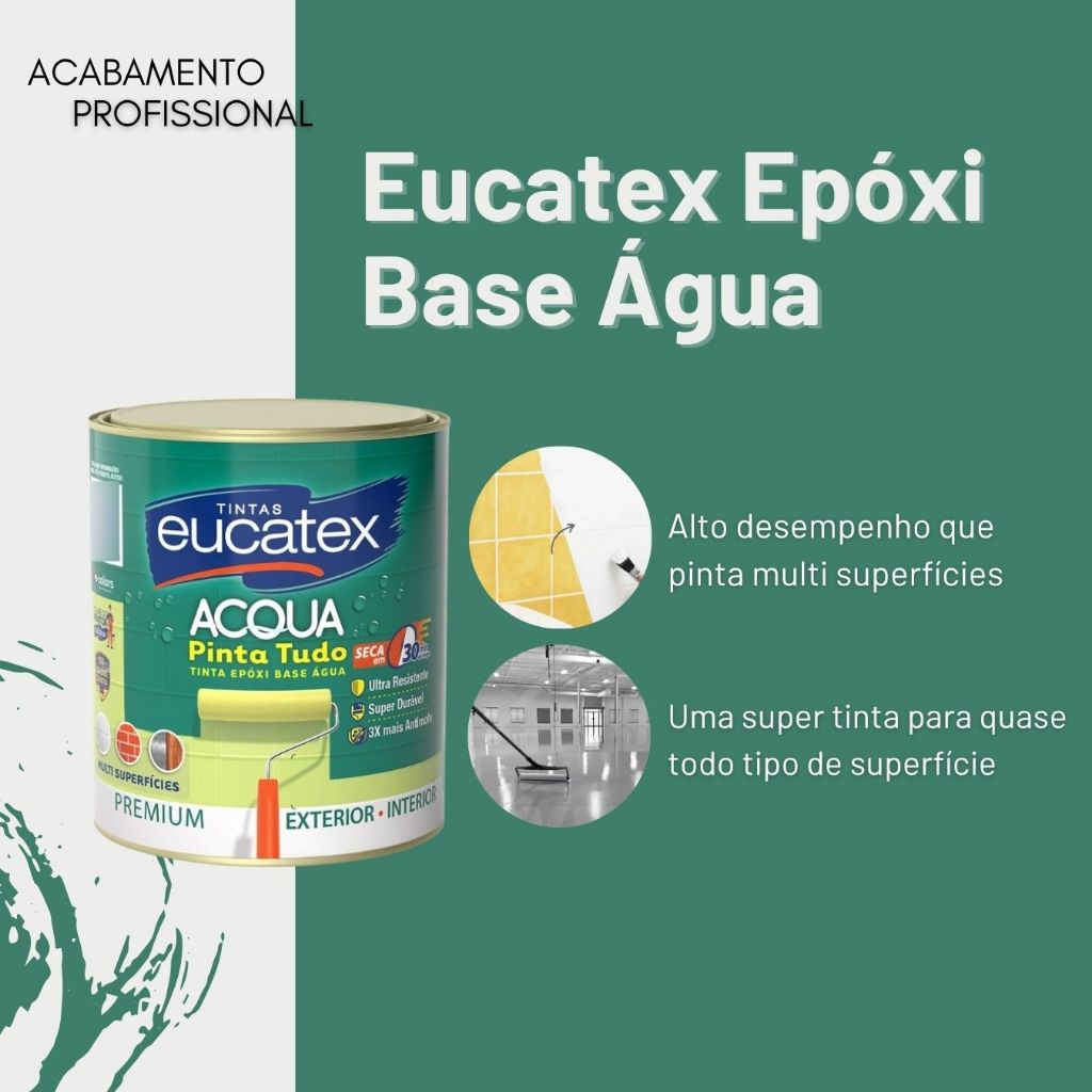 Kit Tinta Eucatex Epóxi Base Água 900ml Corante Xadrez Bandeja Pincel e Rolo Pequenos Reparos