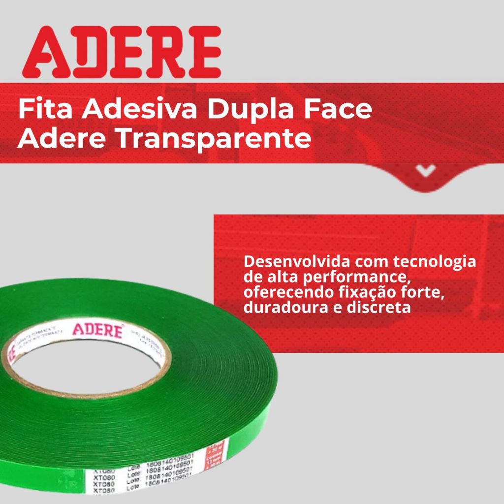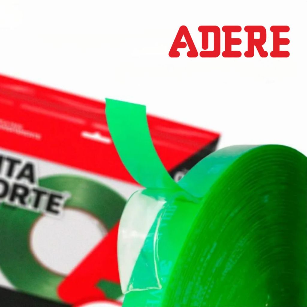 Fita Dupla Face Forte Transparente Verde Adere Liso