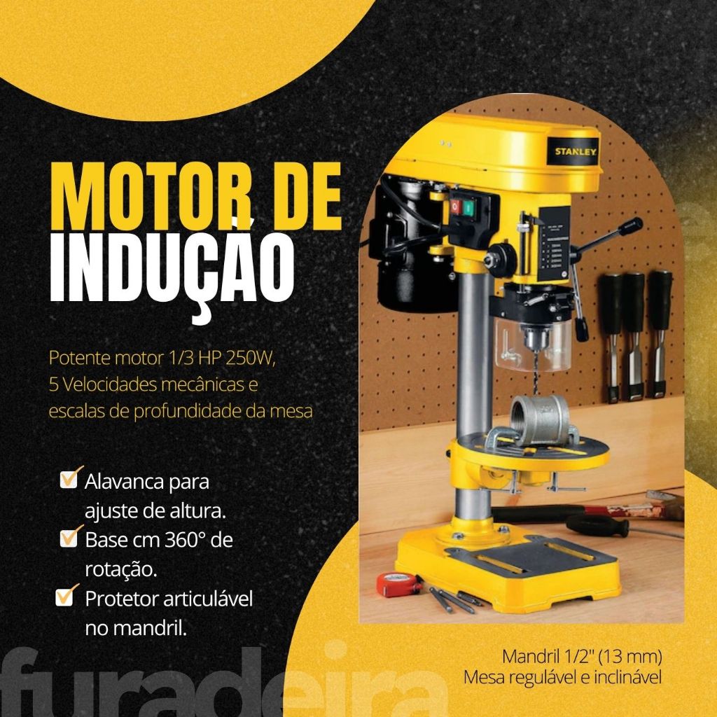 Furadeira De Bancada 1/2" Stanley Modelo SBT2513 Motor 1/3 HP 250W