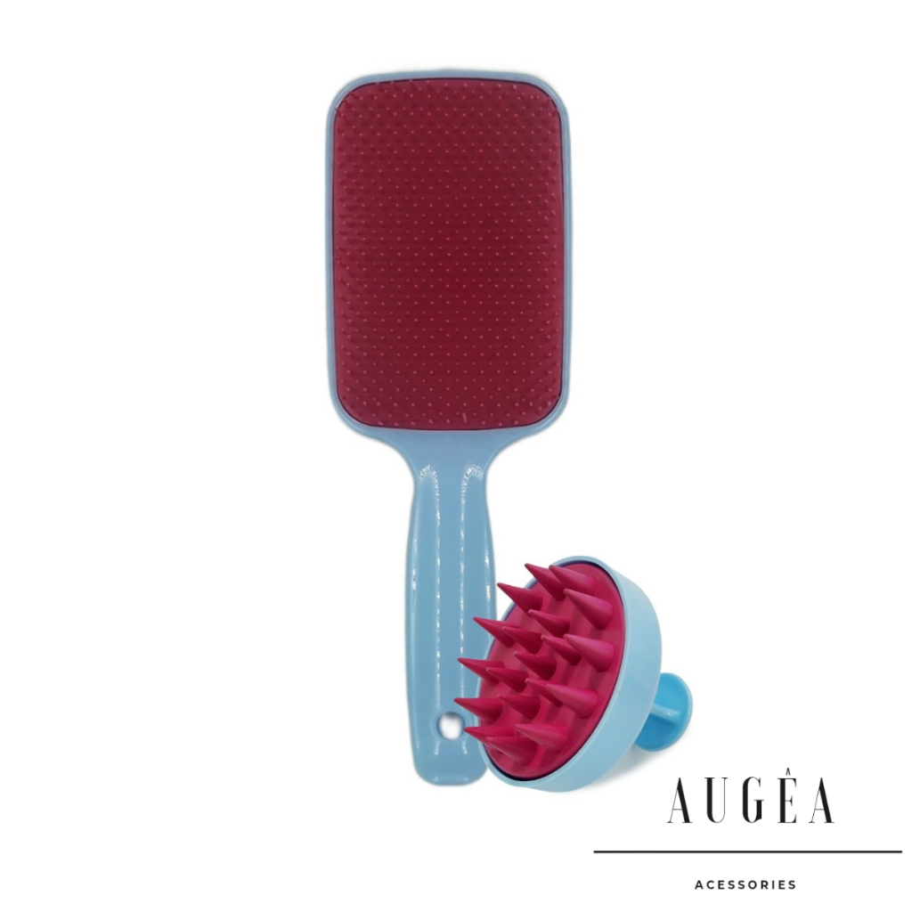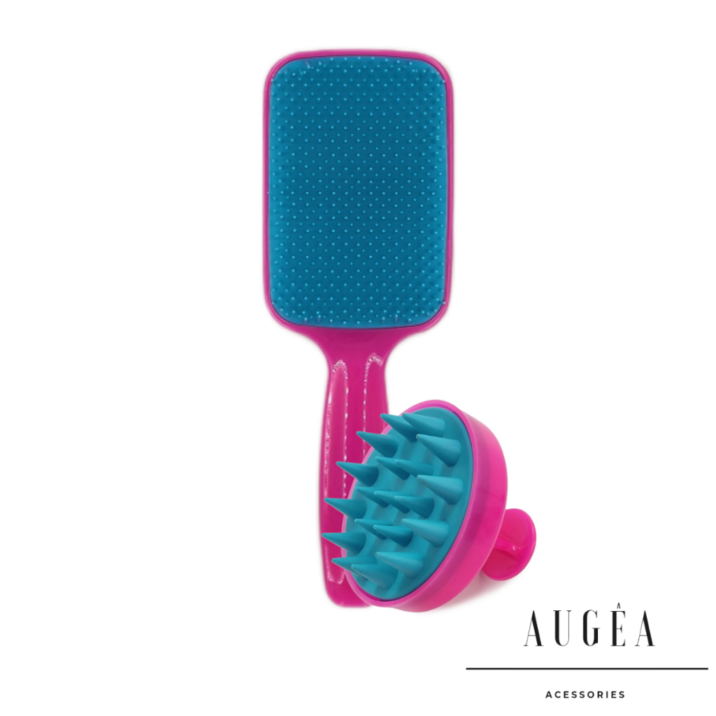 Kit Escova Raquete Flex e Escova Massageadora Capilar de Silicone