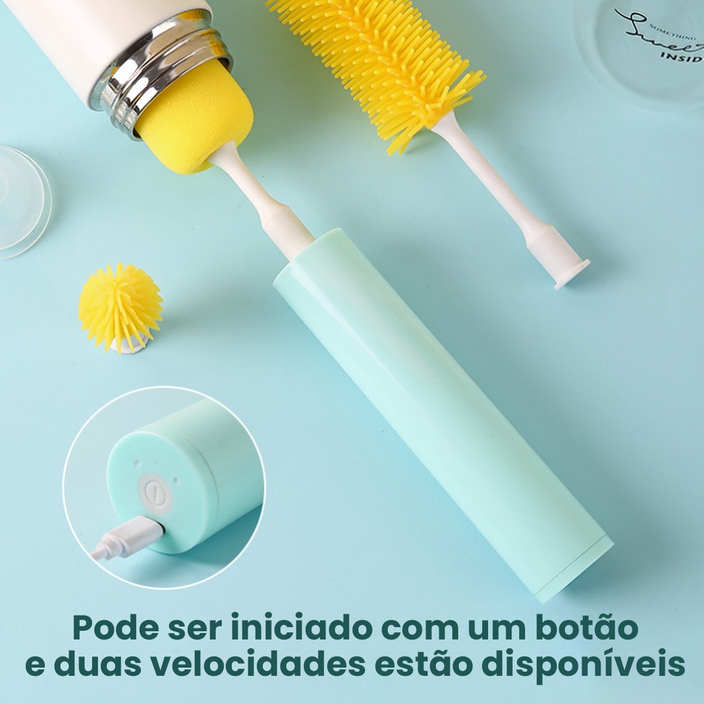 Kit 4 Sem Fio: Escova Elétrica de Silicone para Limpeza e Lavagem de Garrafas Mamadeiras