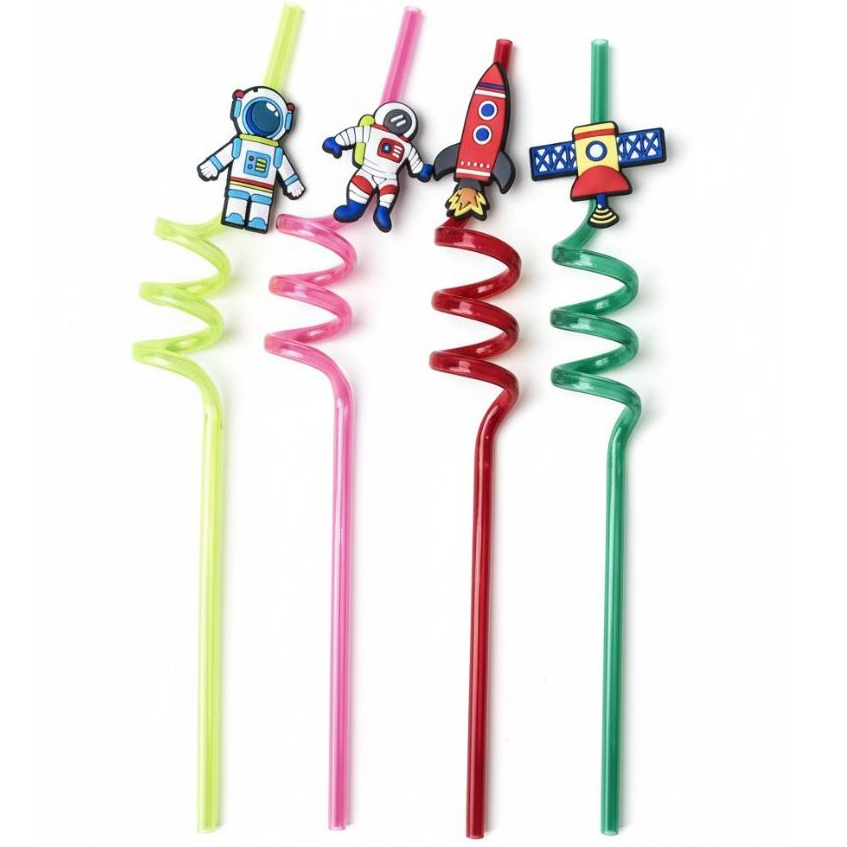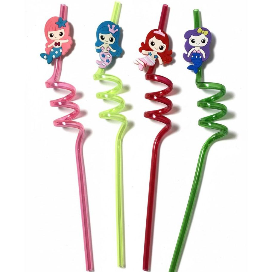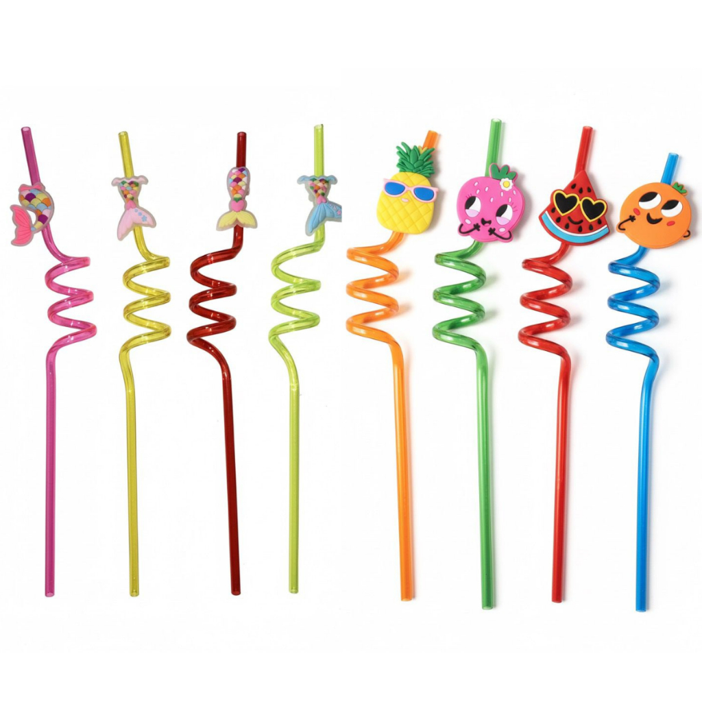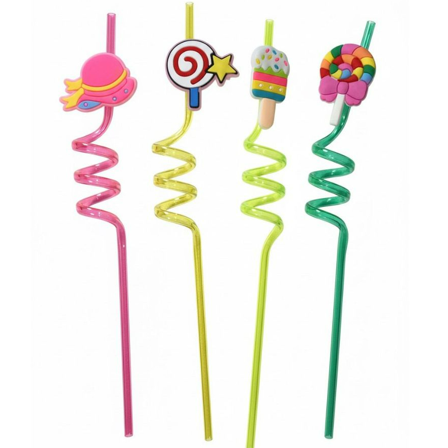 Kit 4 Canudos Espiral Temáticos Coloridos Festas Havaina Decoração Carnaval