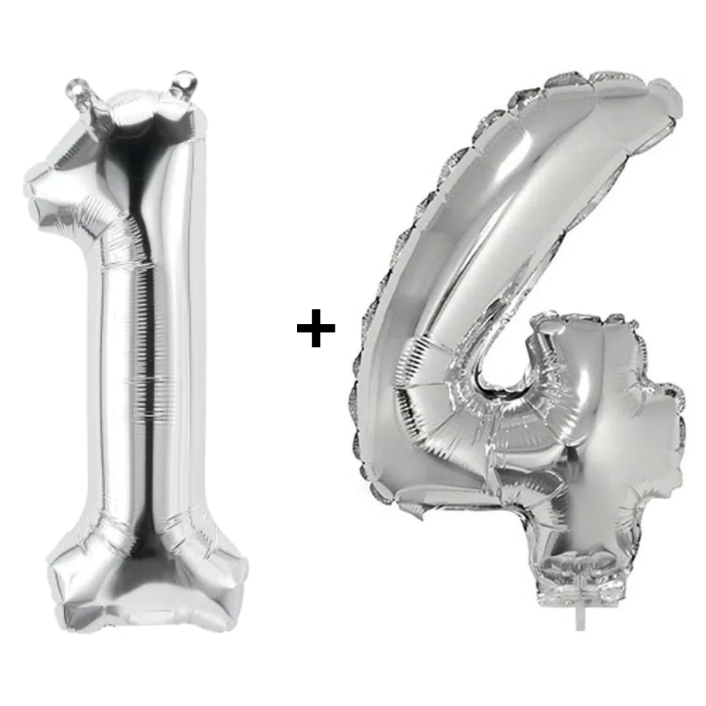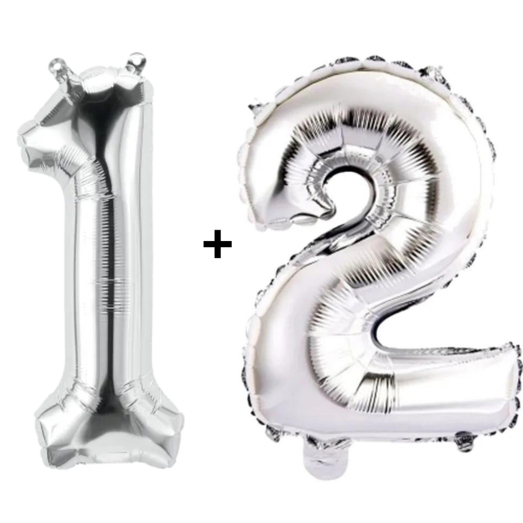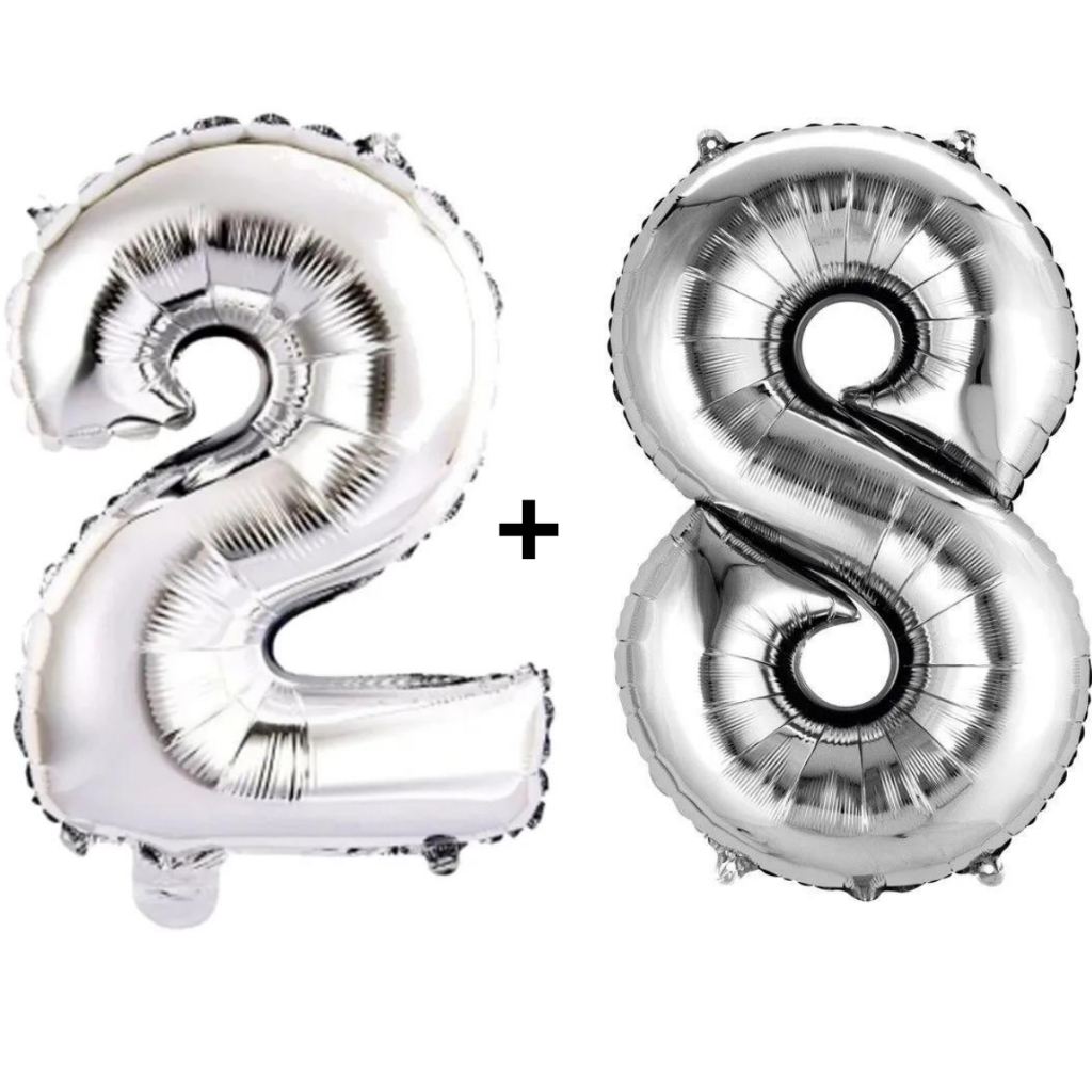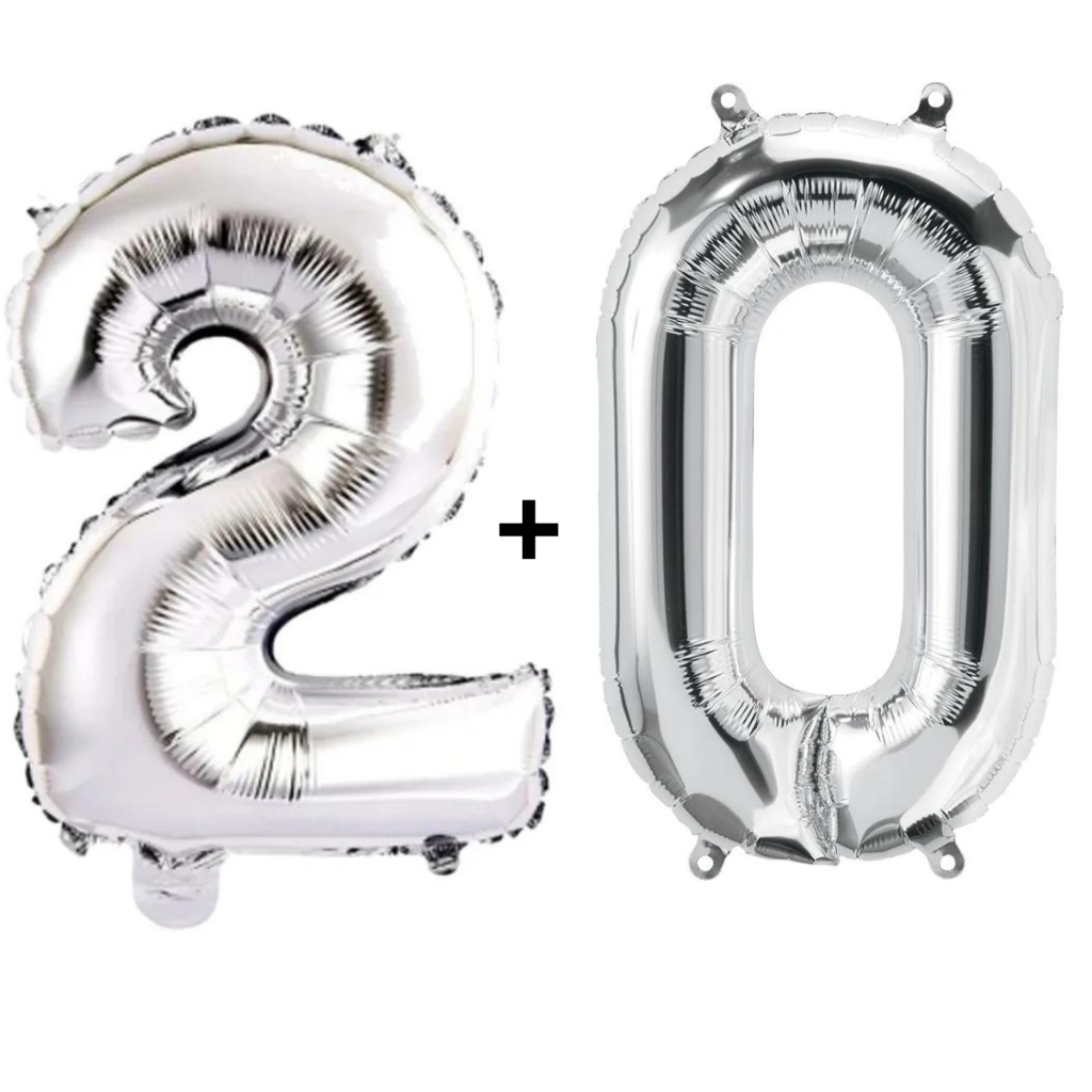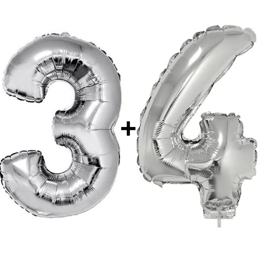 Kit 2 Balões Número 75cm Metalizado Prata Decoração de Aniversário Festa Infantil e Adulto