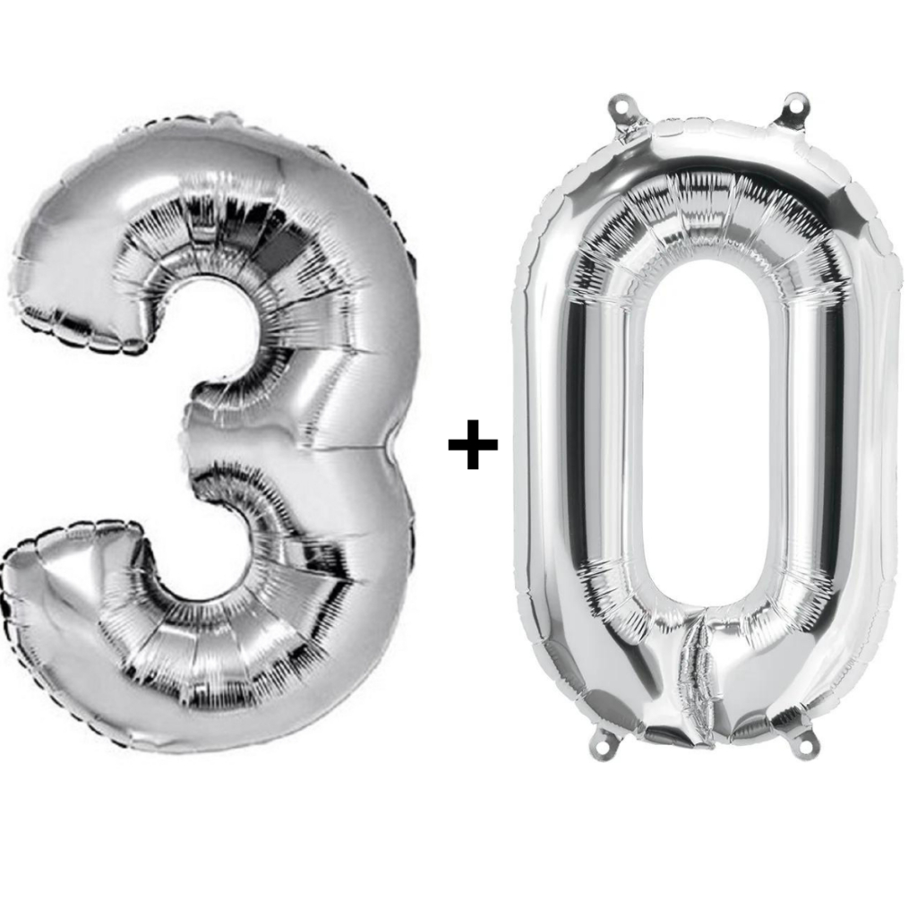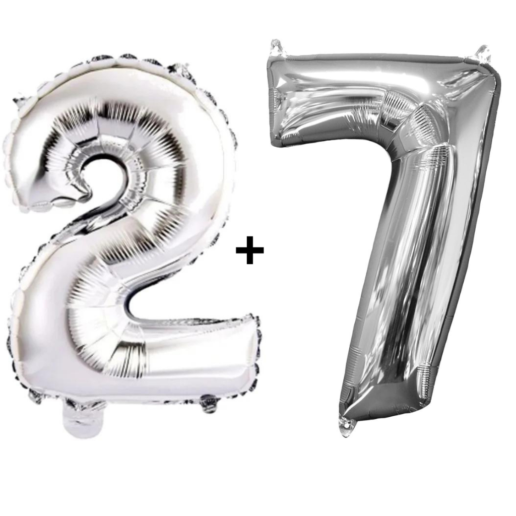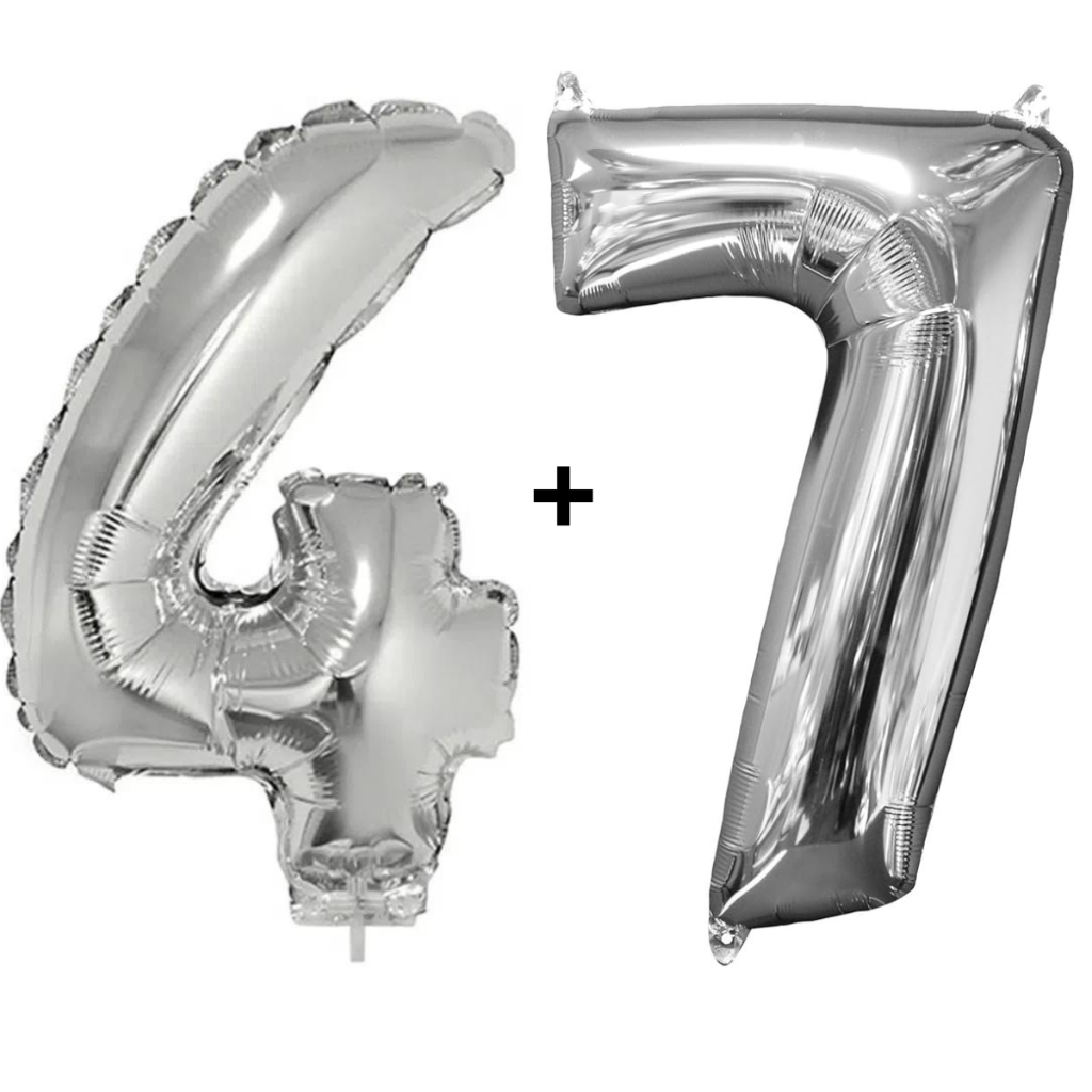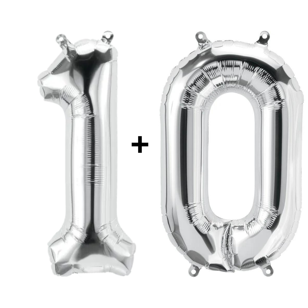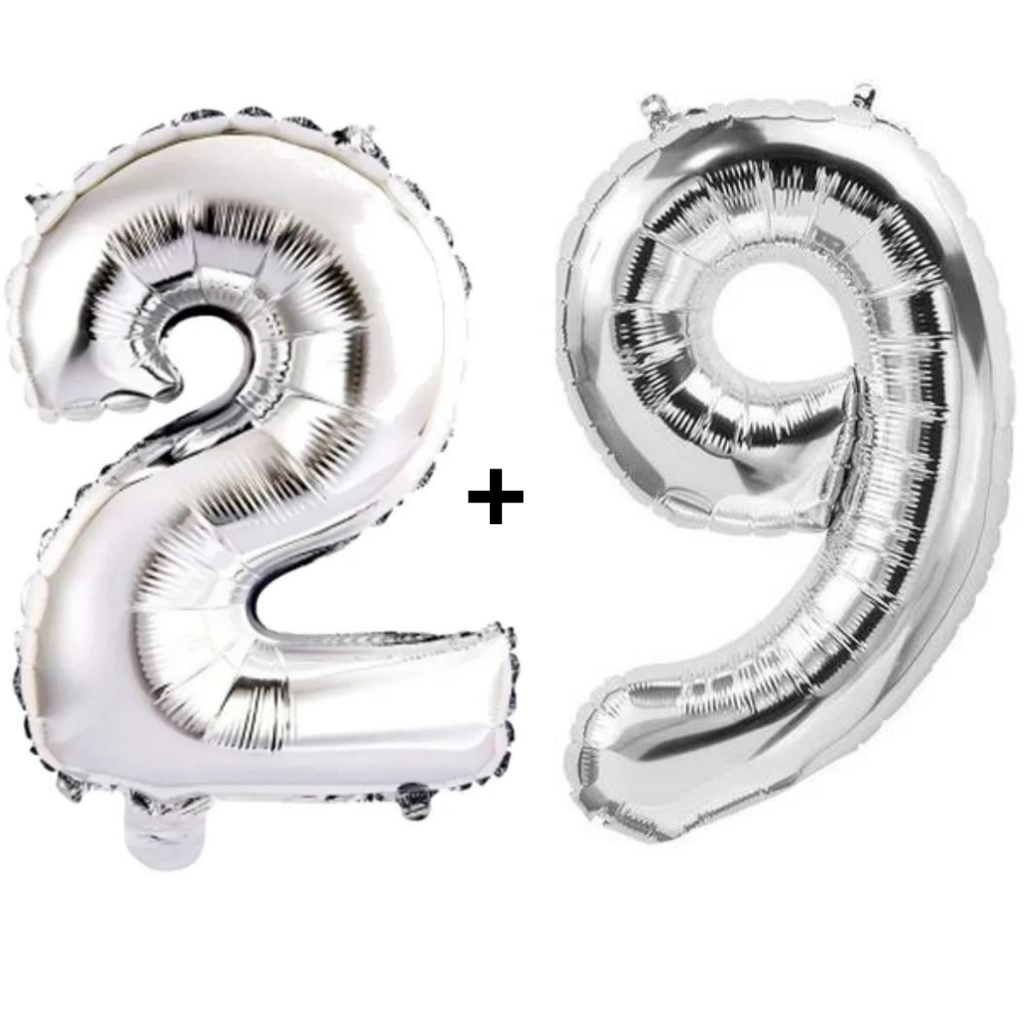 Kit 2 Balões Número 75cm Metalizado Prata Decoração de Aniversário Festa Infantil e Adulto
