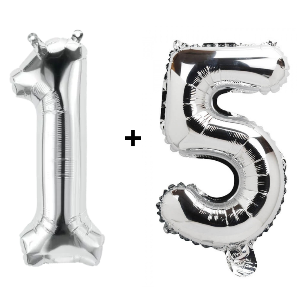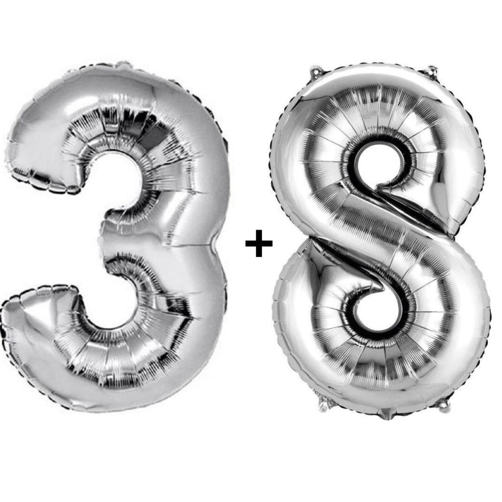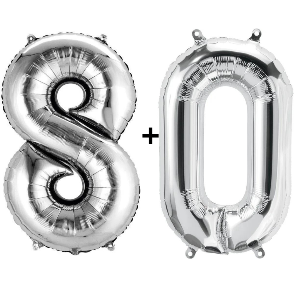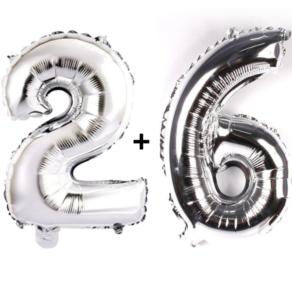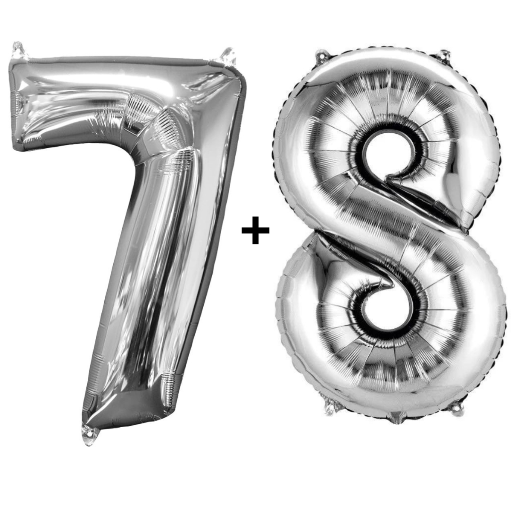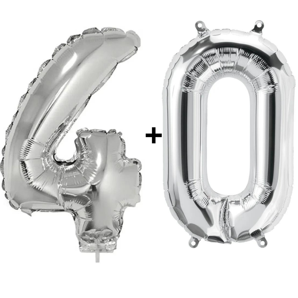 Kit 2 Balões Número 75cm Metalizado Prata Decoração de Aniversário Festa Infantil e Adulto