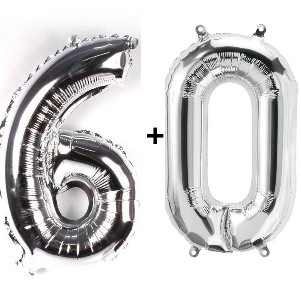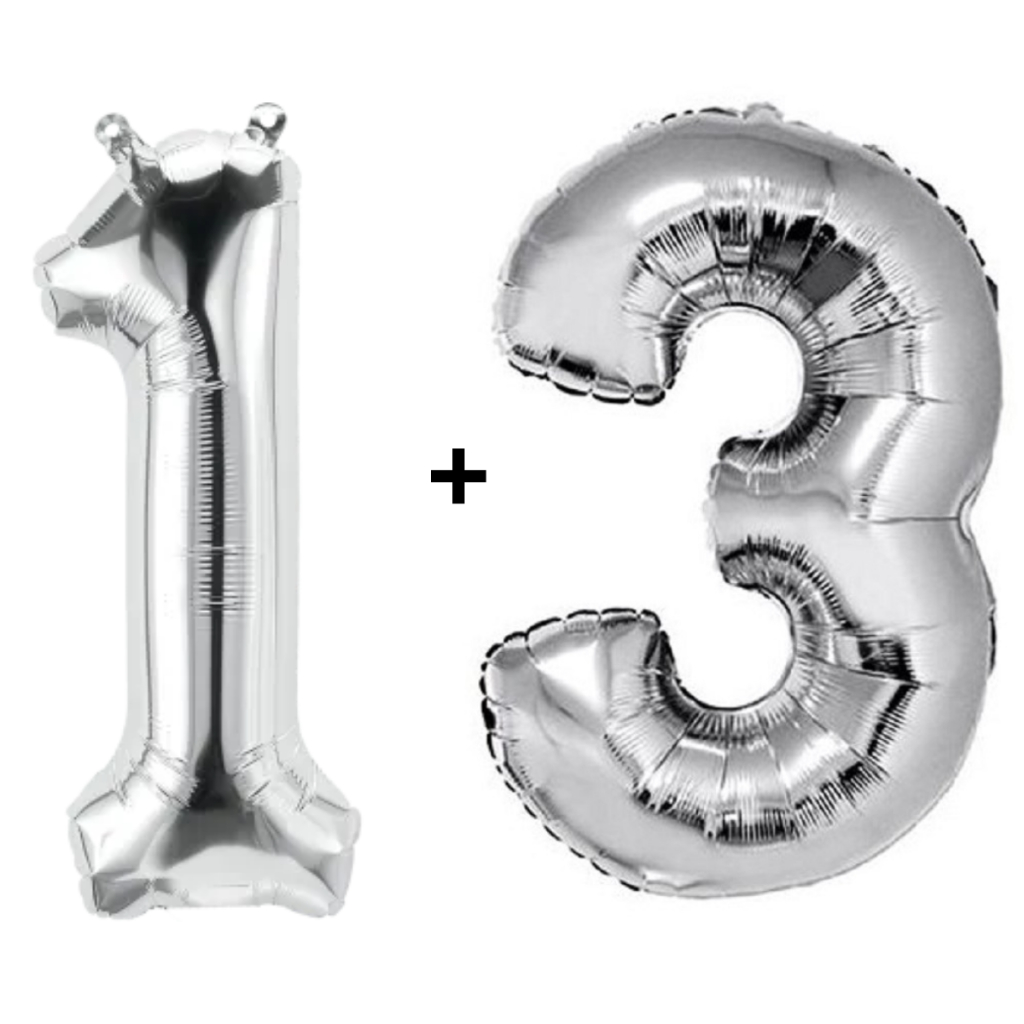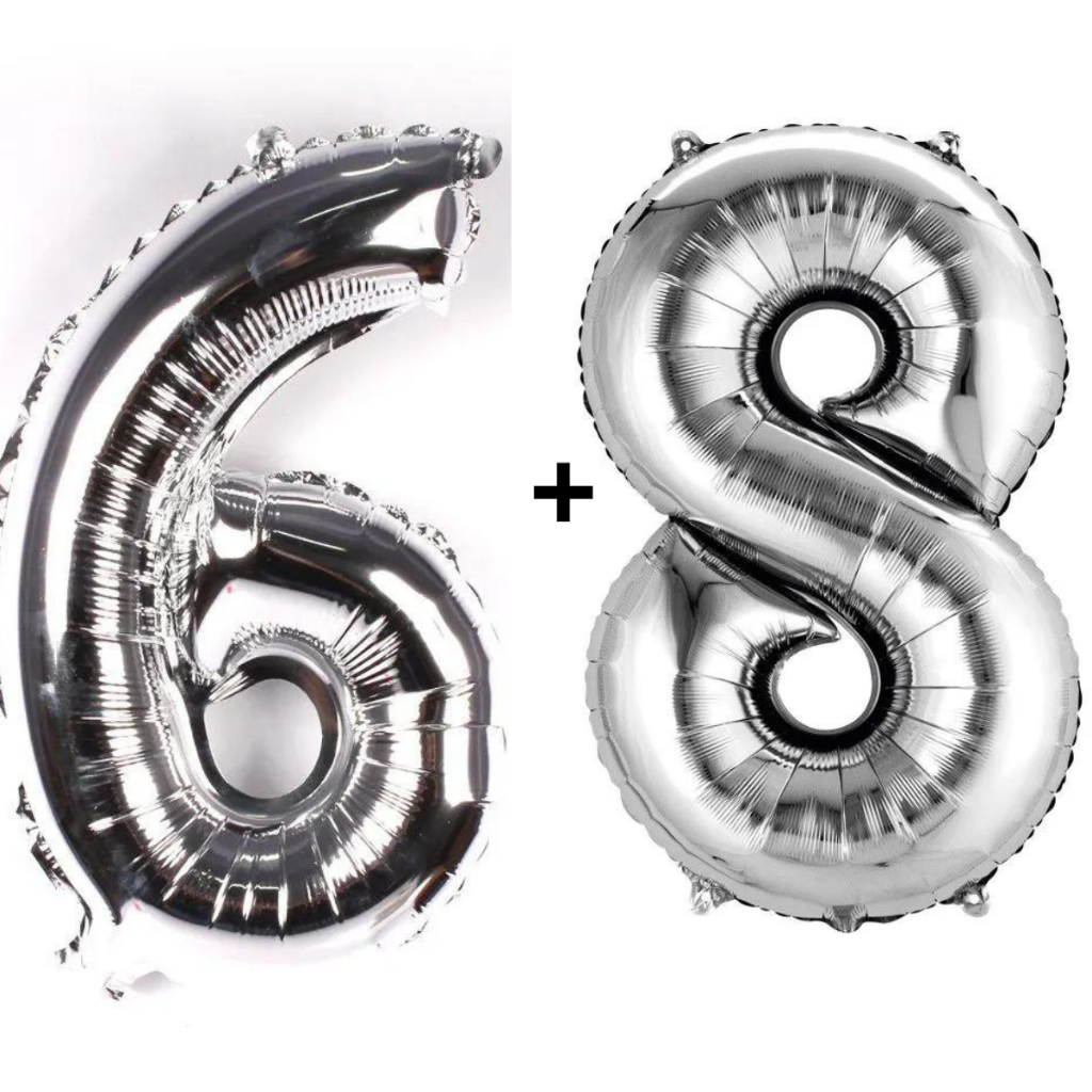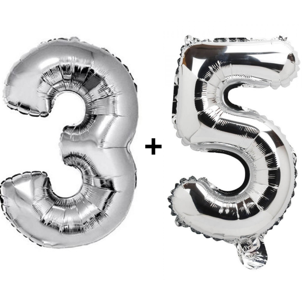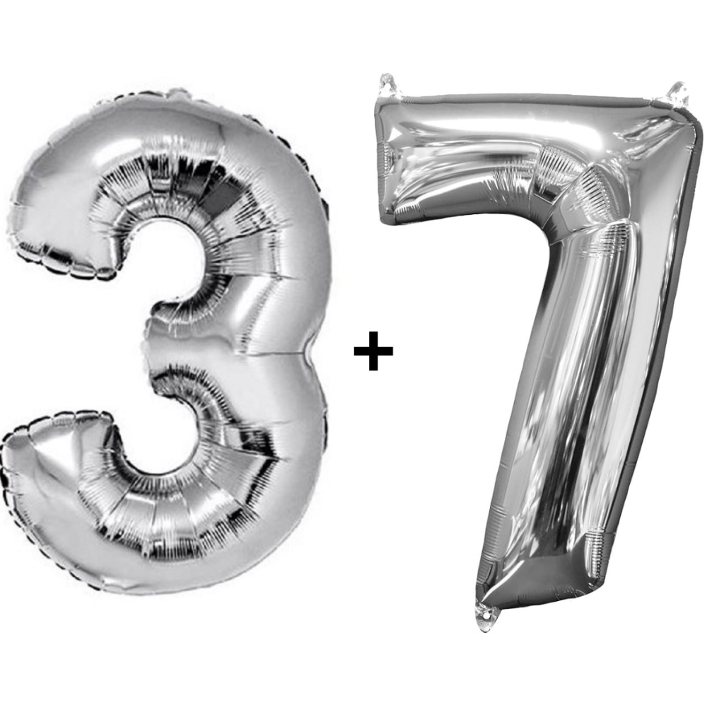 Kit 2 Balões Número 75cm Metalizado Prata Decoração de Aniversário Festa Infantil e Adulto