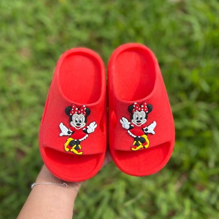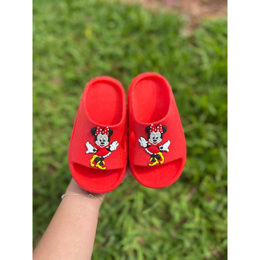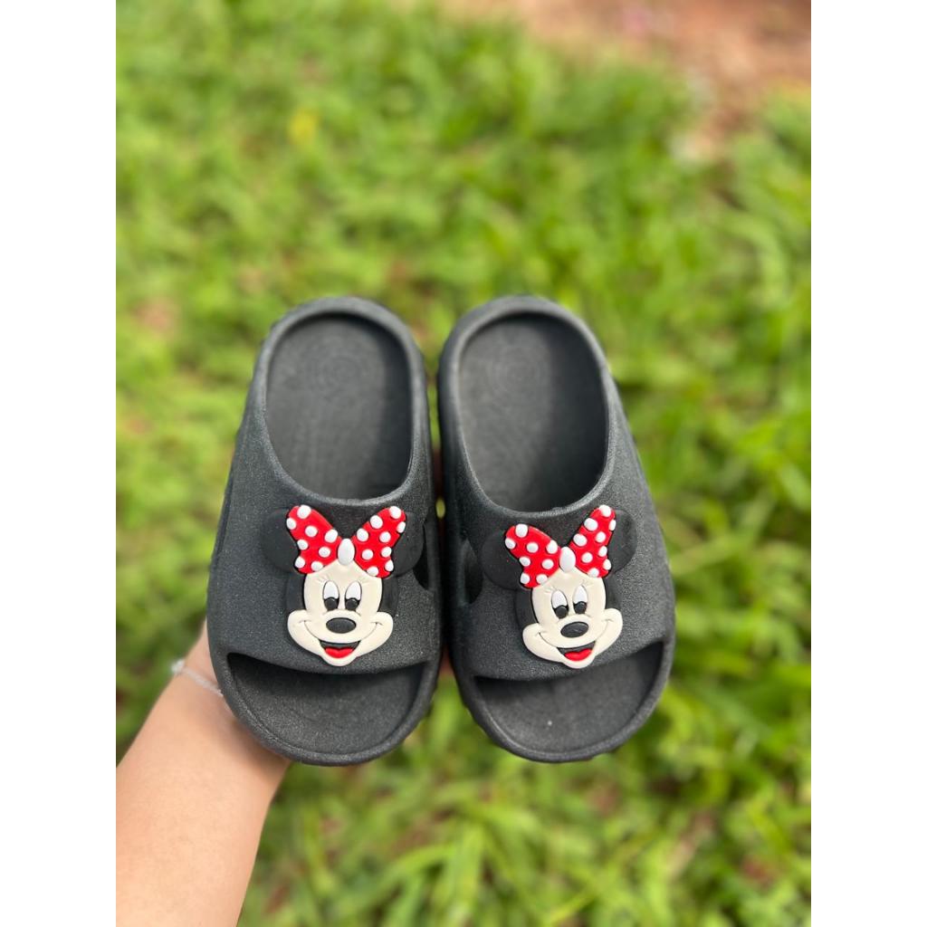 Chinelo Infantil Minnie Preto/Vermelho Slide Nuvem com Sola Antiderrapante Para Meninas