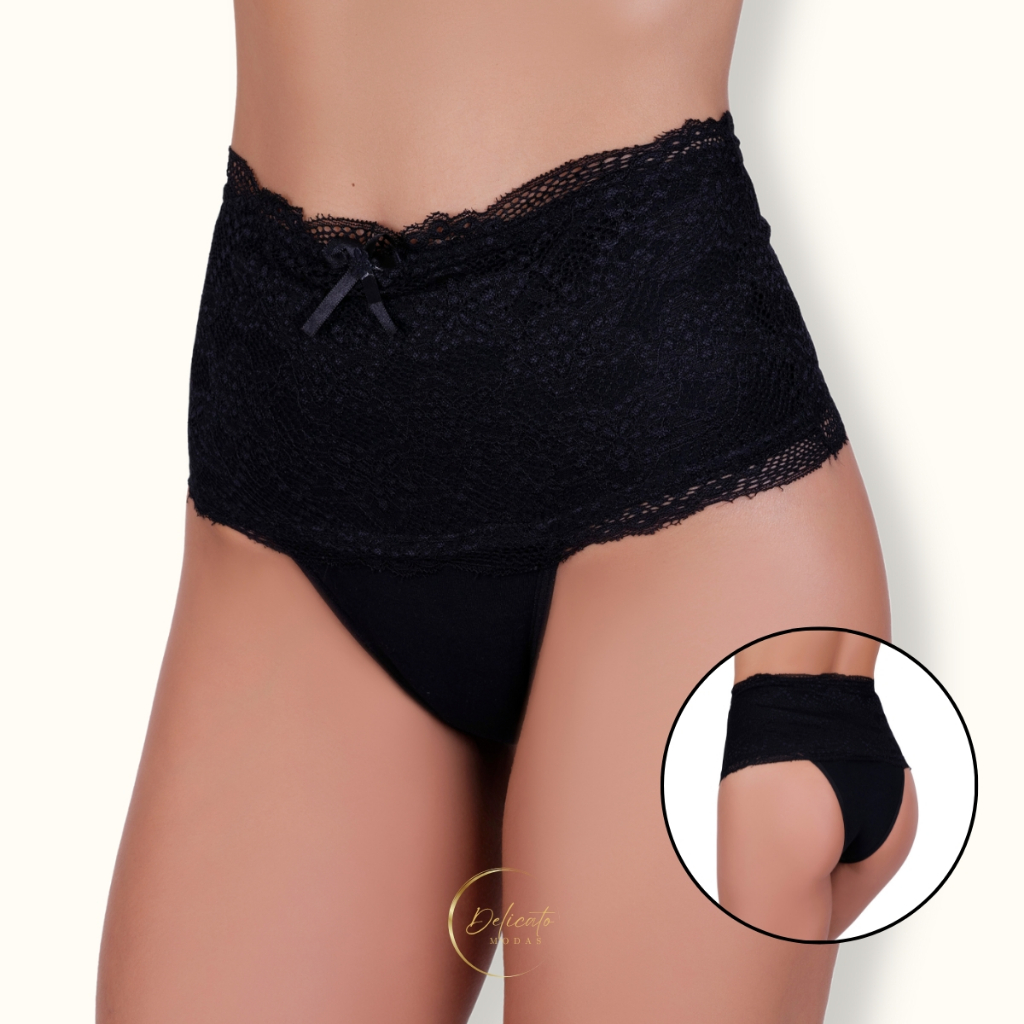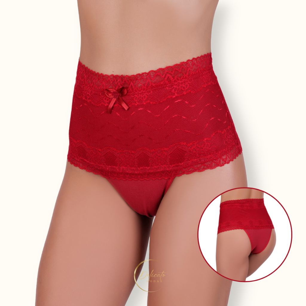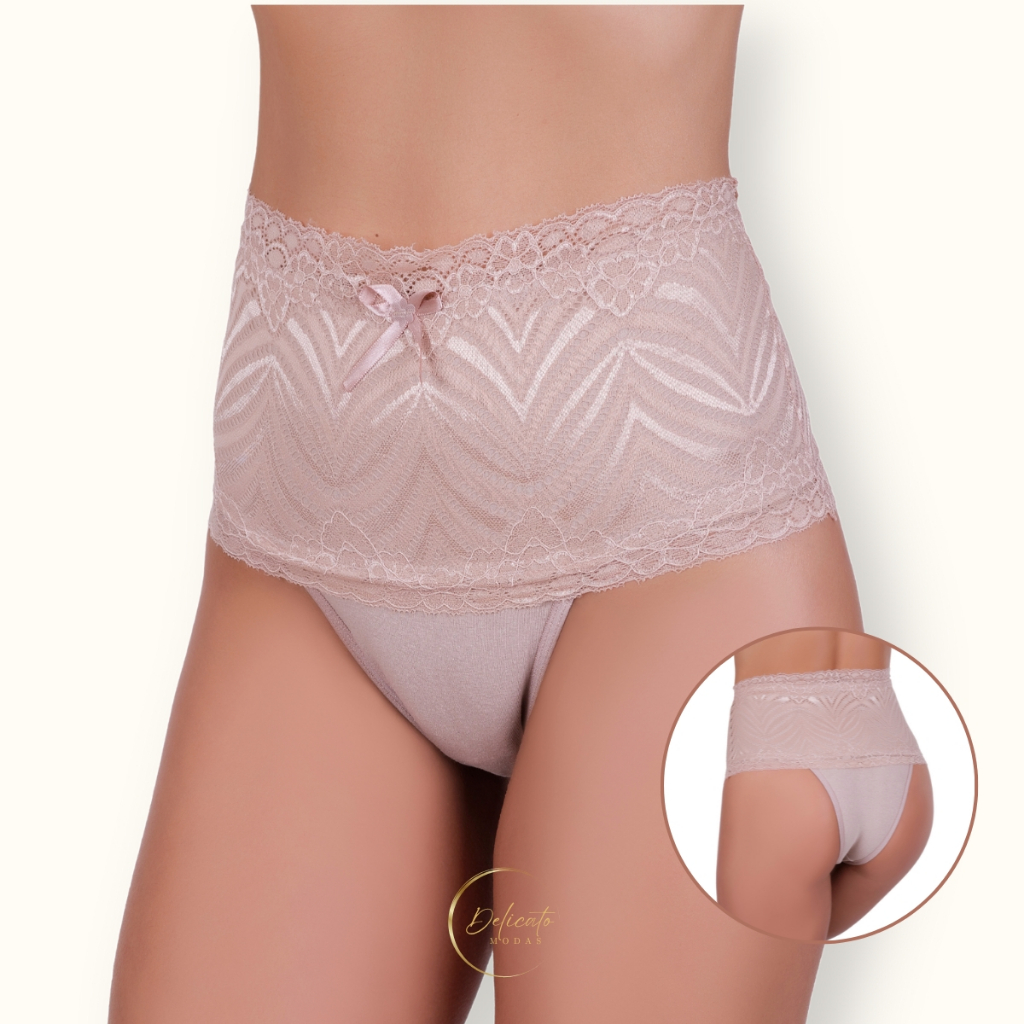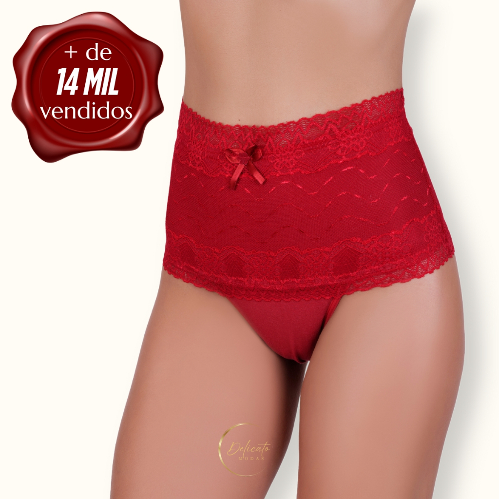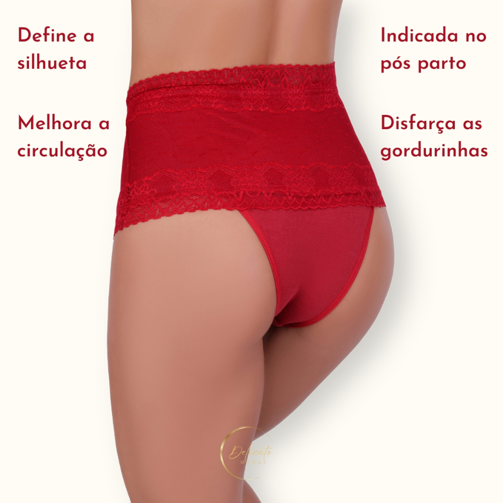 Calcinha Modeladora Renda Algodão Cós Alto Conforto | Pós-Parto P-GG