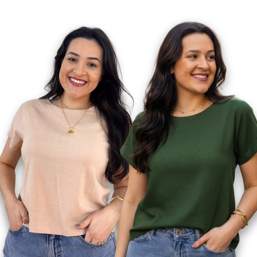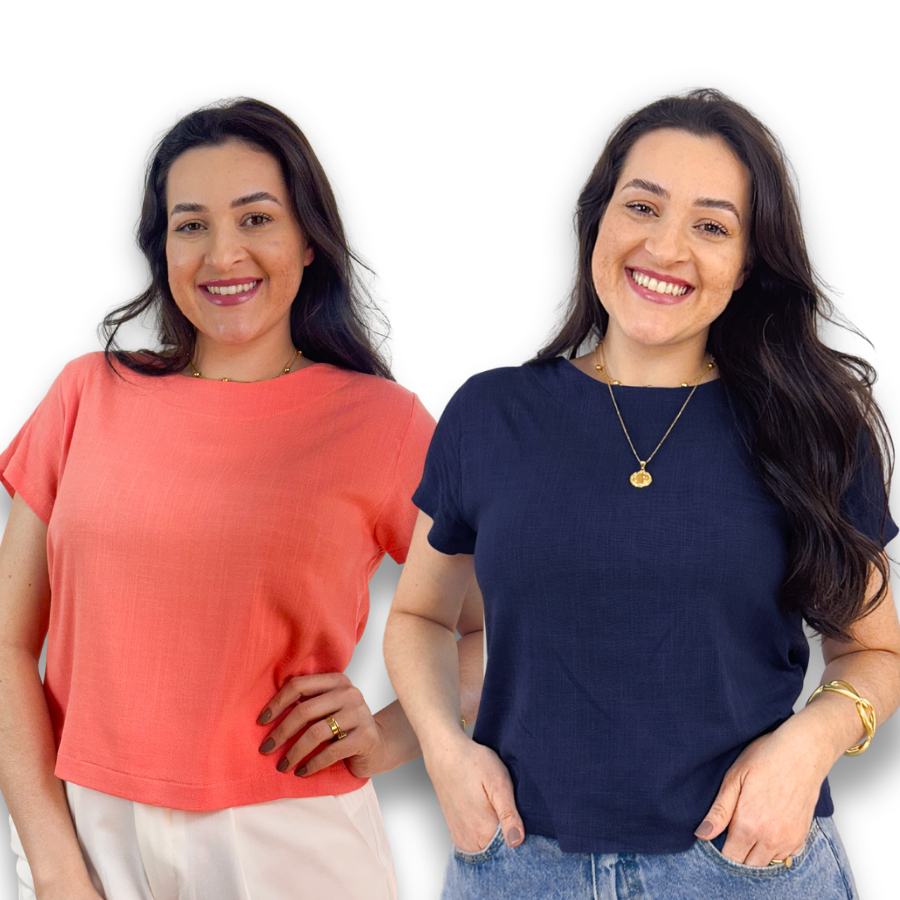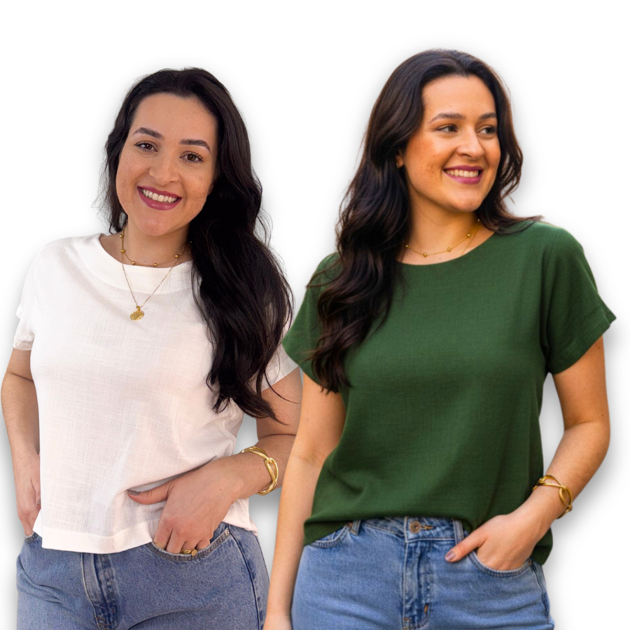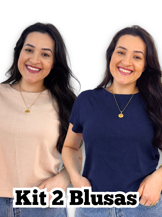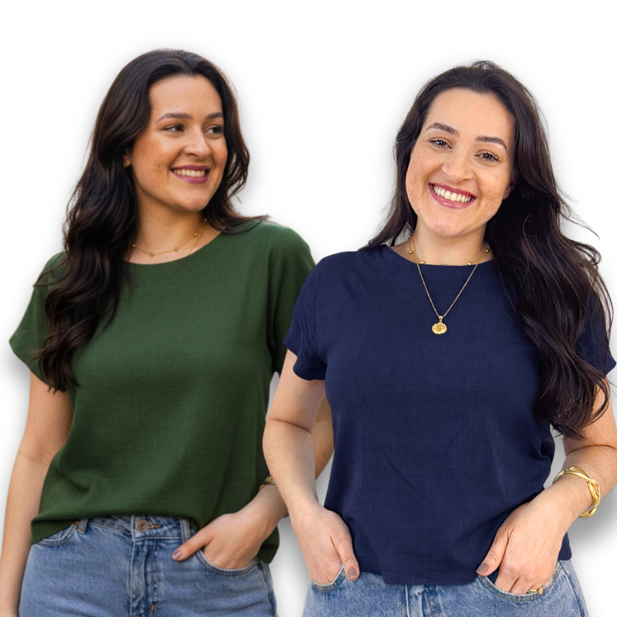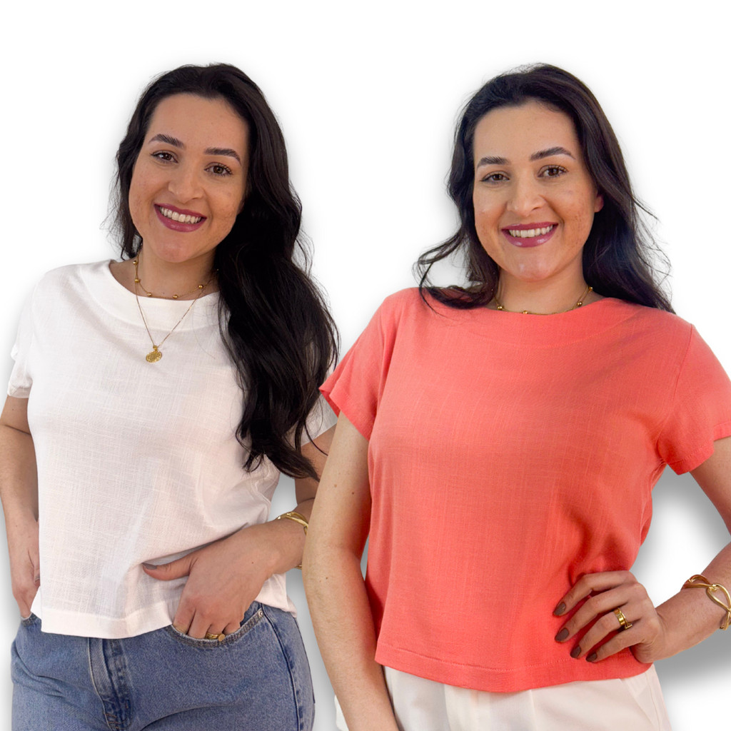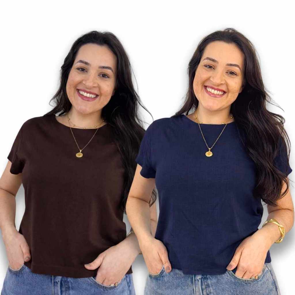 Kit 2 Blusa Feminina Manga Curta Viscolinho Gola Redonda Social Casual Elegante Verao Basica Fresca