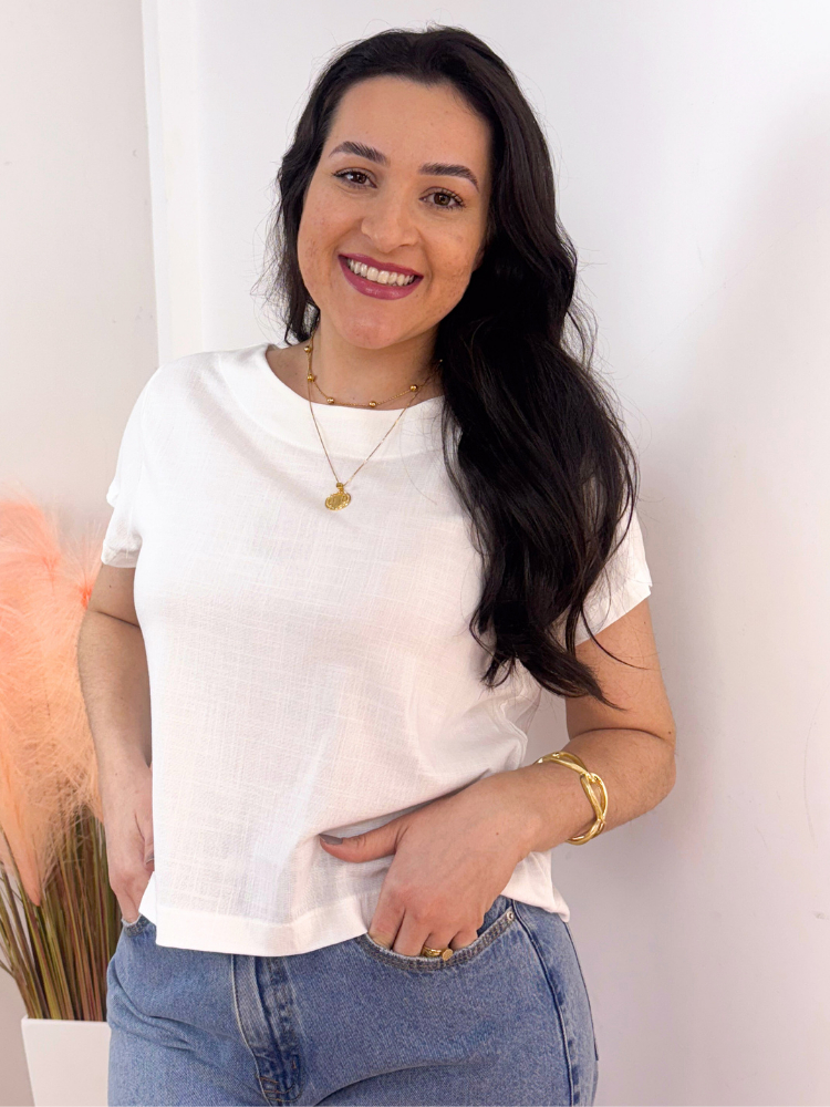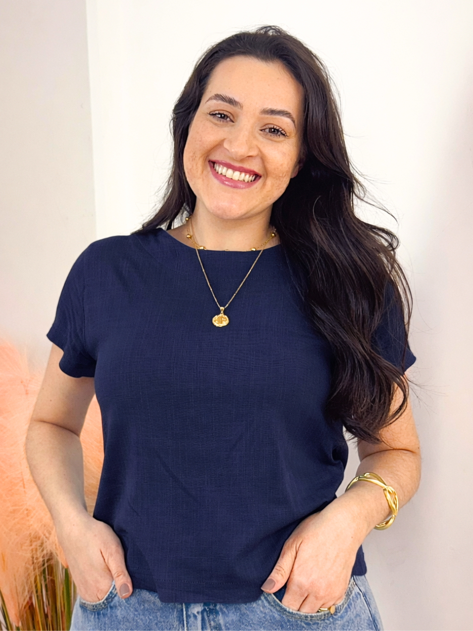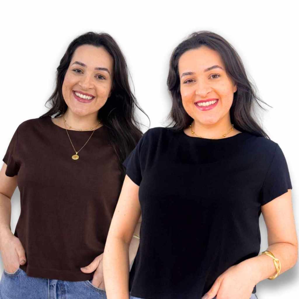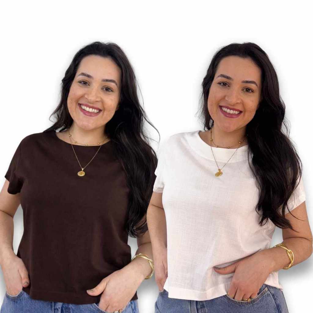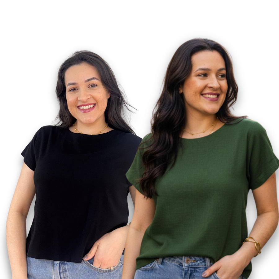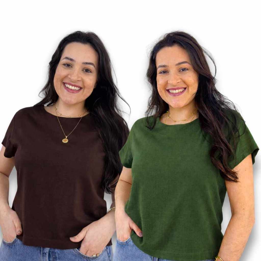 Kit 2 Blusa Feminina Manga Curta Viscolinho Gola Redonda Social Casual Elegante Verao Basica Fresca