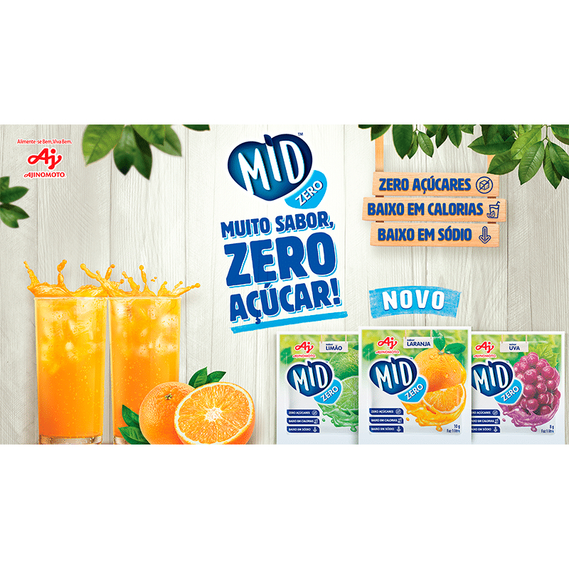 Refresco Suco Em Pó MID Zero 10g Laranja ou Tangerina - Caixa Com 15 Unidades - Escolha o Sabor