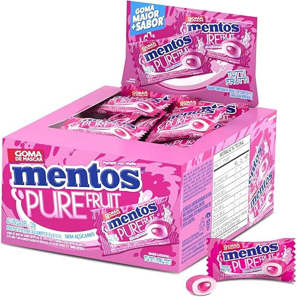 Chiclete Mentos Monopeça Pure Fresh Com 60 Peças - Menta ou Tutti-Frutti - Escolha o Sabor