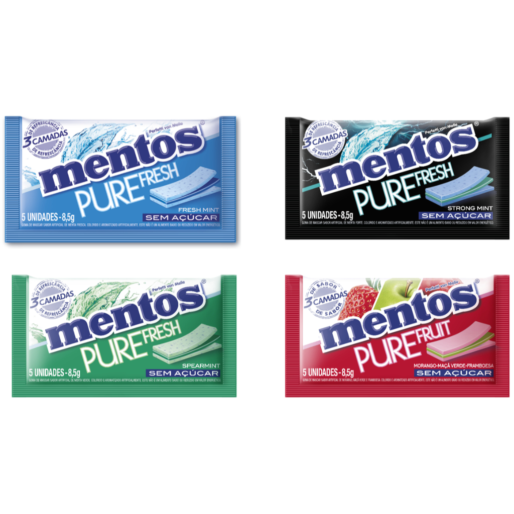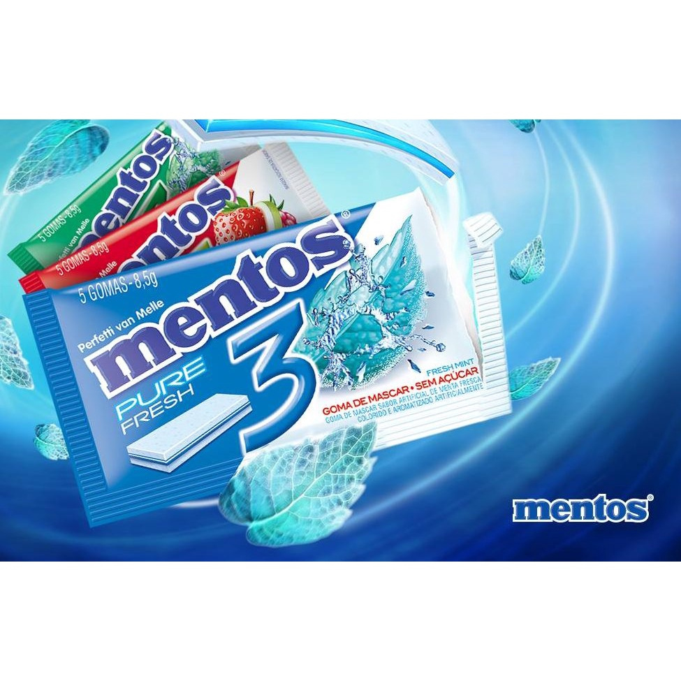 Chiclete Mentos 3 Camadas Sem Açucar 8,5g 15 Unidades - Escolha o Sabor