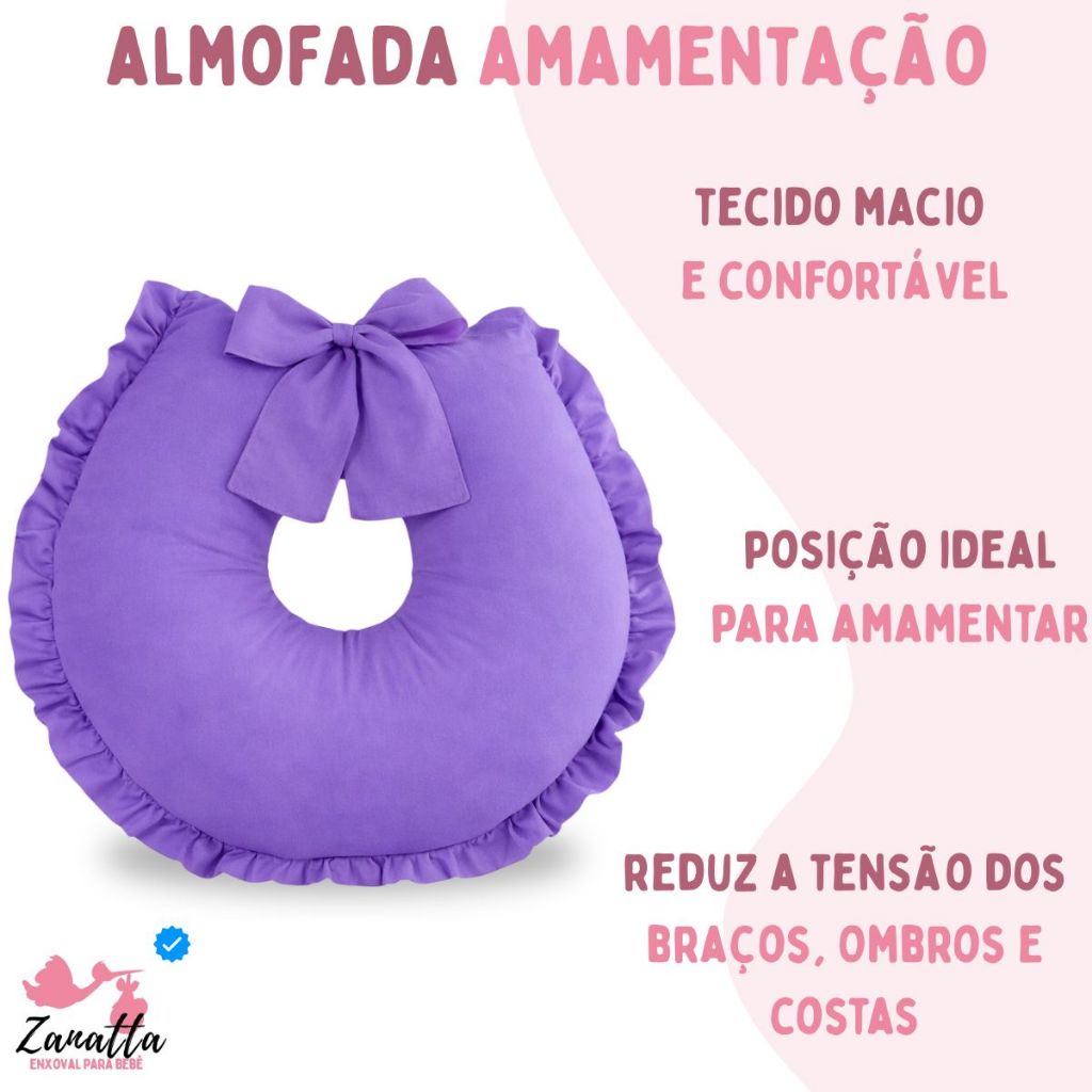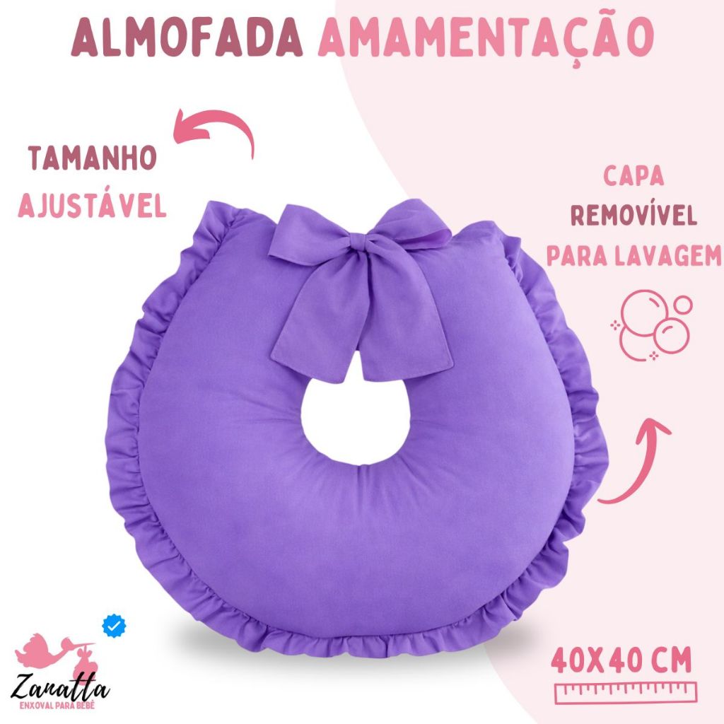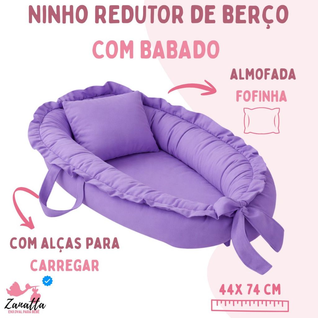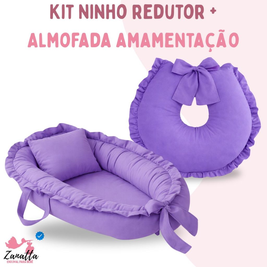 Ninho Redutor de Berço com Almofada Amamentação 2 Peças Enxoval Quarto Bebê Menina Menino Roxo Lilás