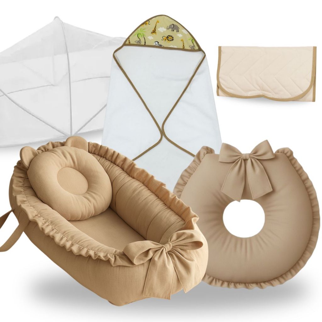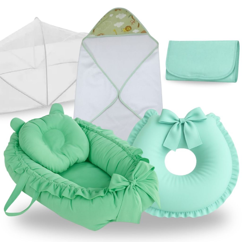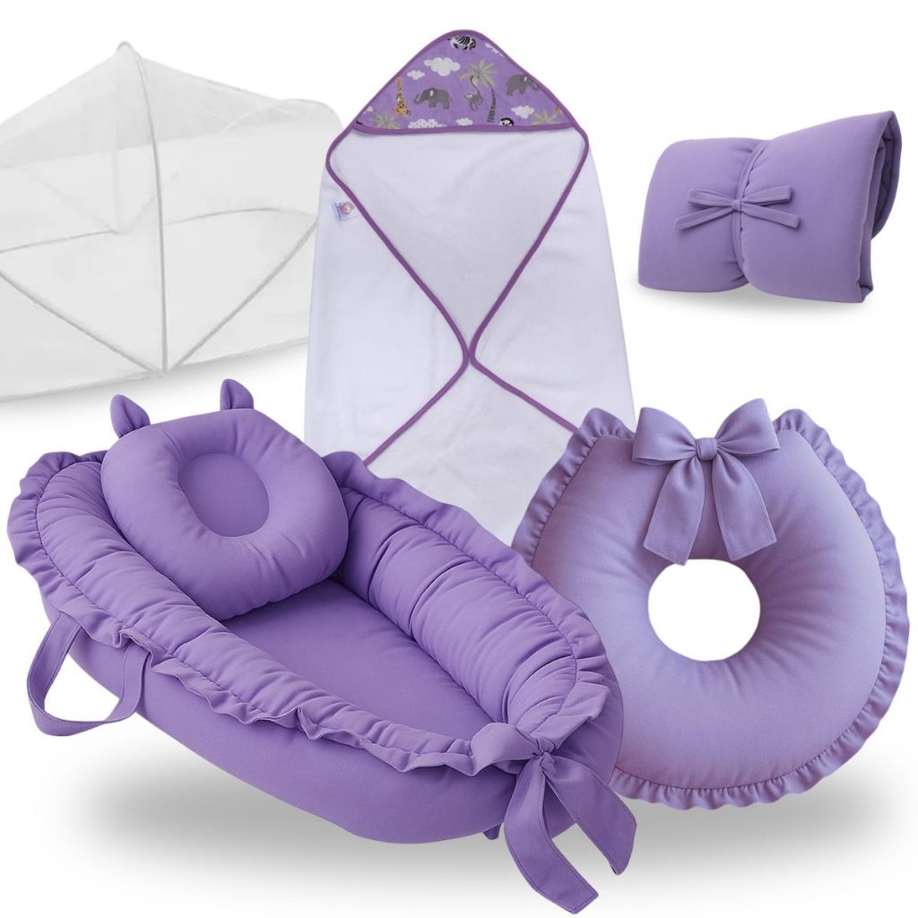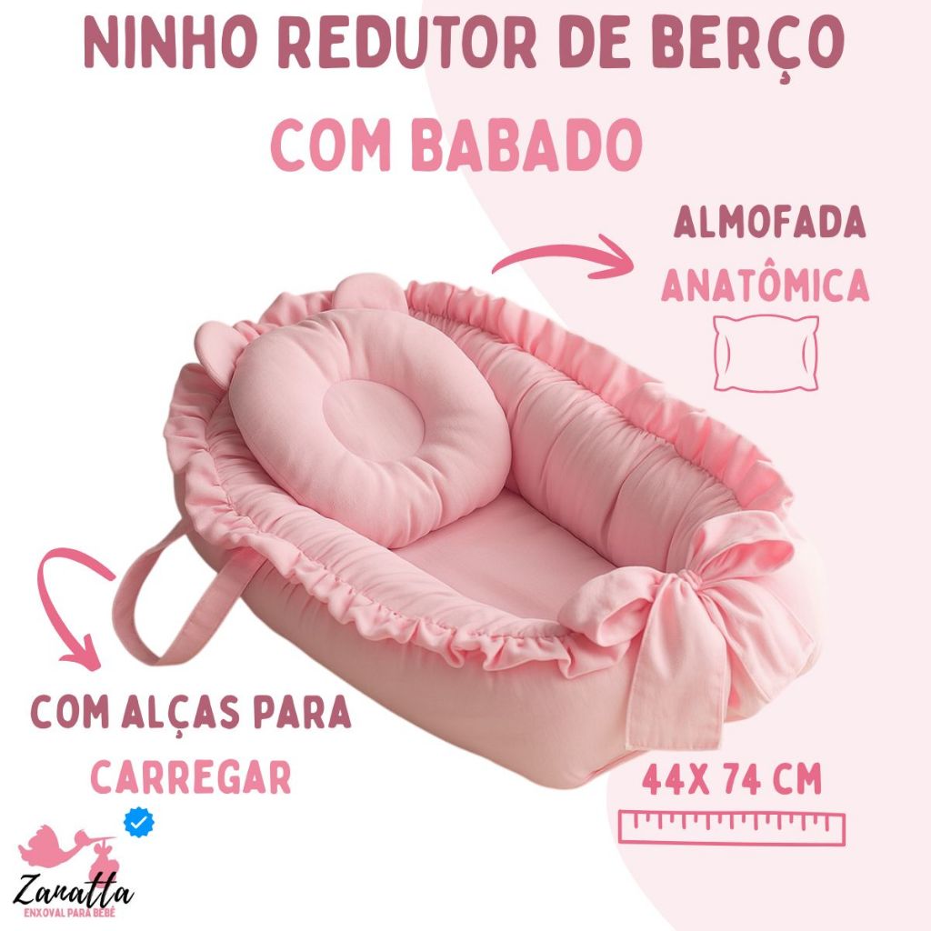 Ninho Redutor de Berço Para Bebe Almofada Amamentação Toalha Banho Trocador Mosquiteiro Kit Rosa