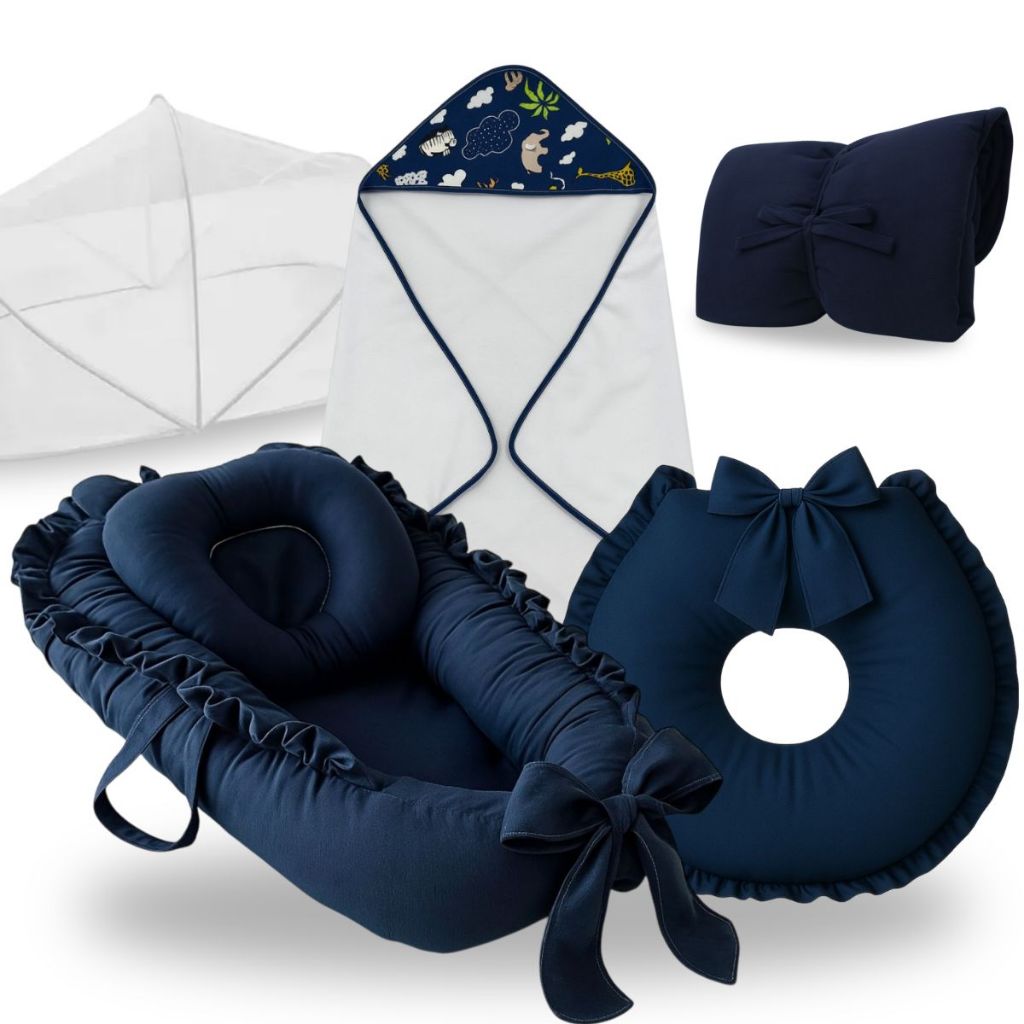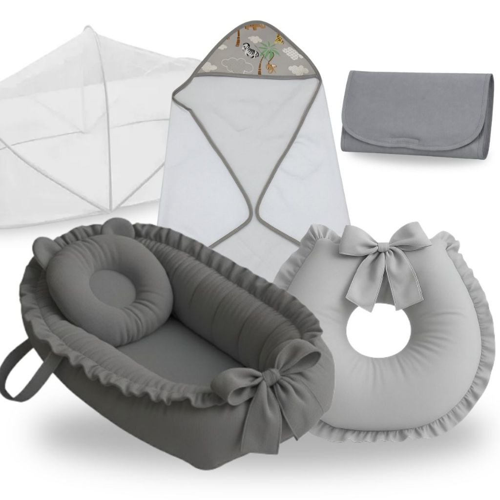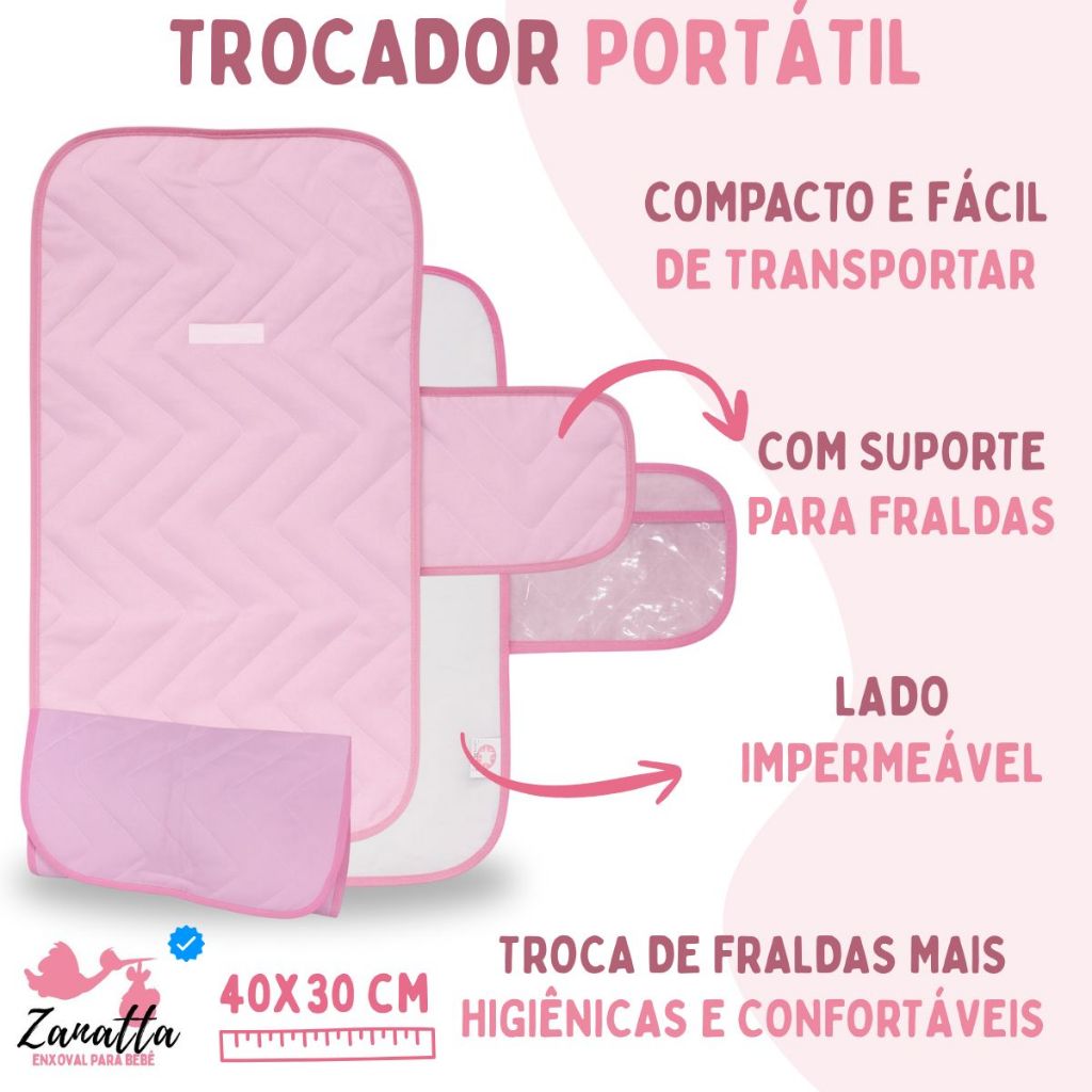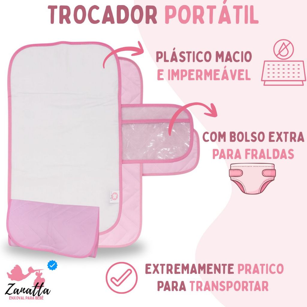 Ninho Redutor de Berço Para Bebe Almofada Amamentação Toalha Banho Trocador Mosquiteiro Kit Rosa