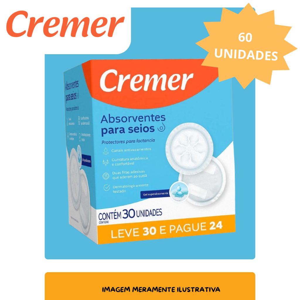 Kit 60 und de Absorvente Descartavéis Para Seios Toque Suave Cremer