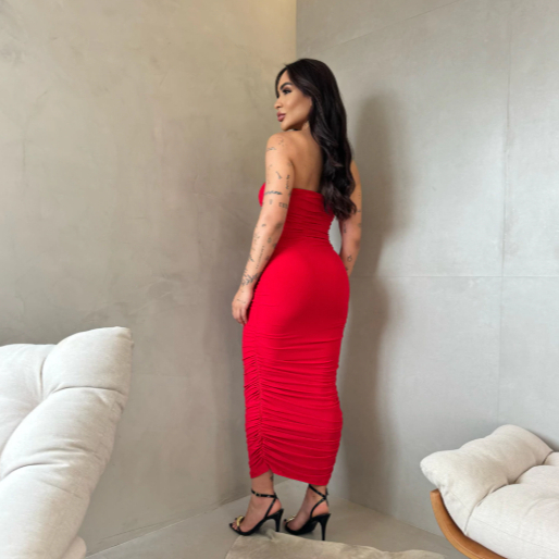 Vestido Feminino MIDI Drapeado