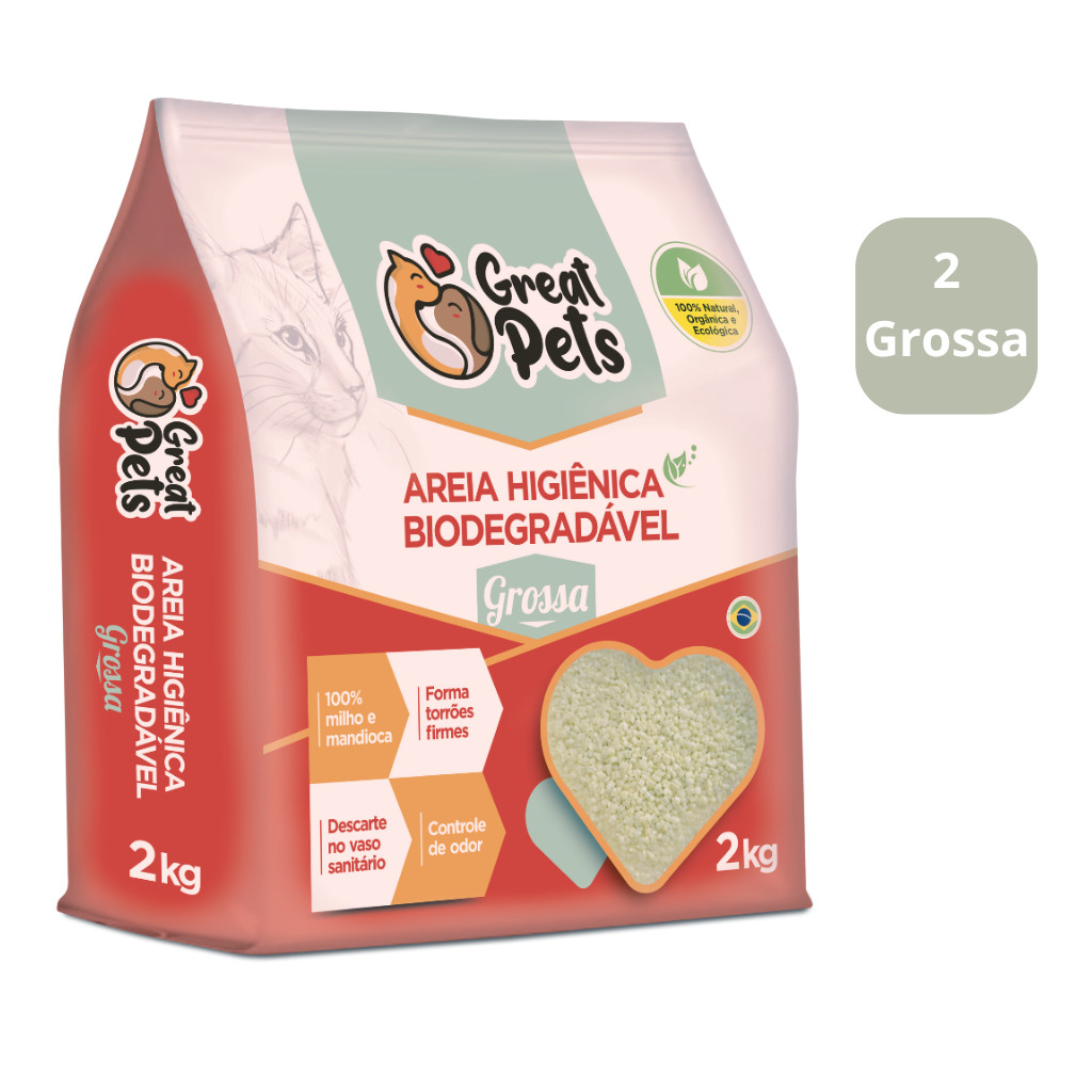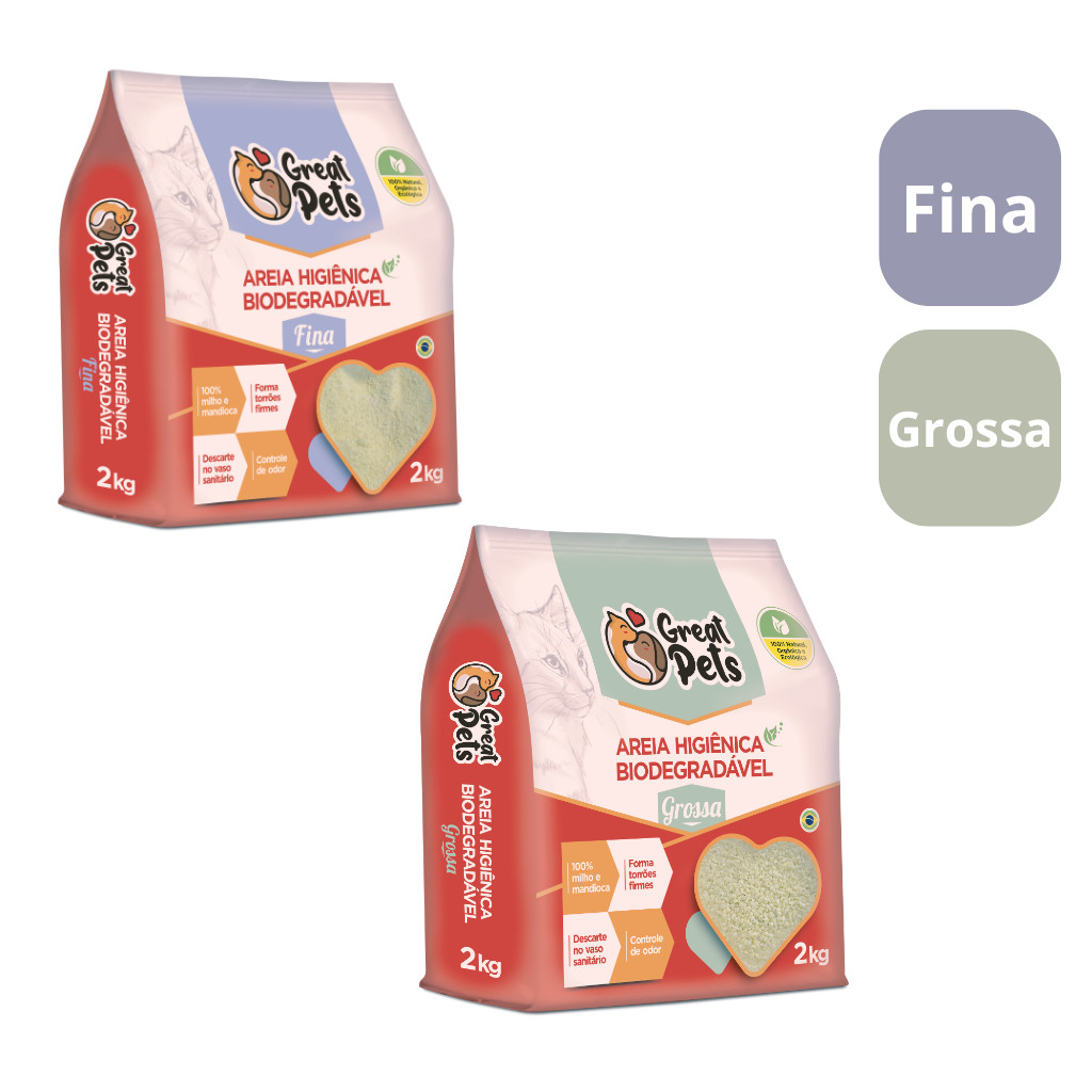 KIT 2 Areias Para Gatos Biodegradavel Mandioca Milho Fina Grossa 4kg - Great Pets