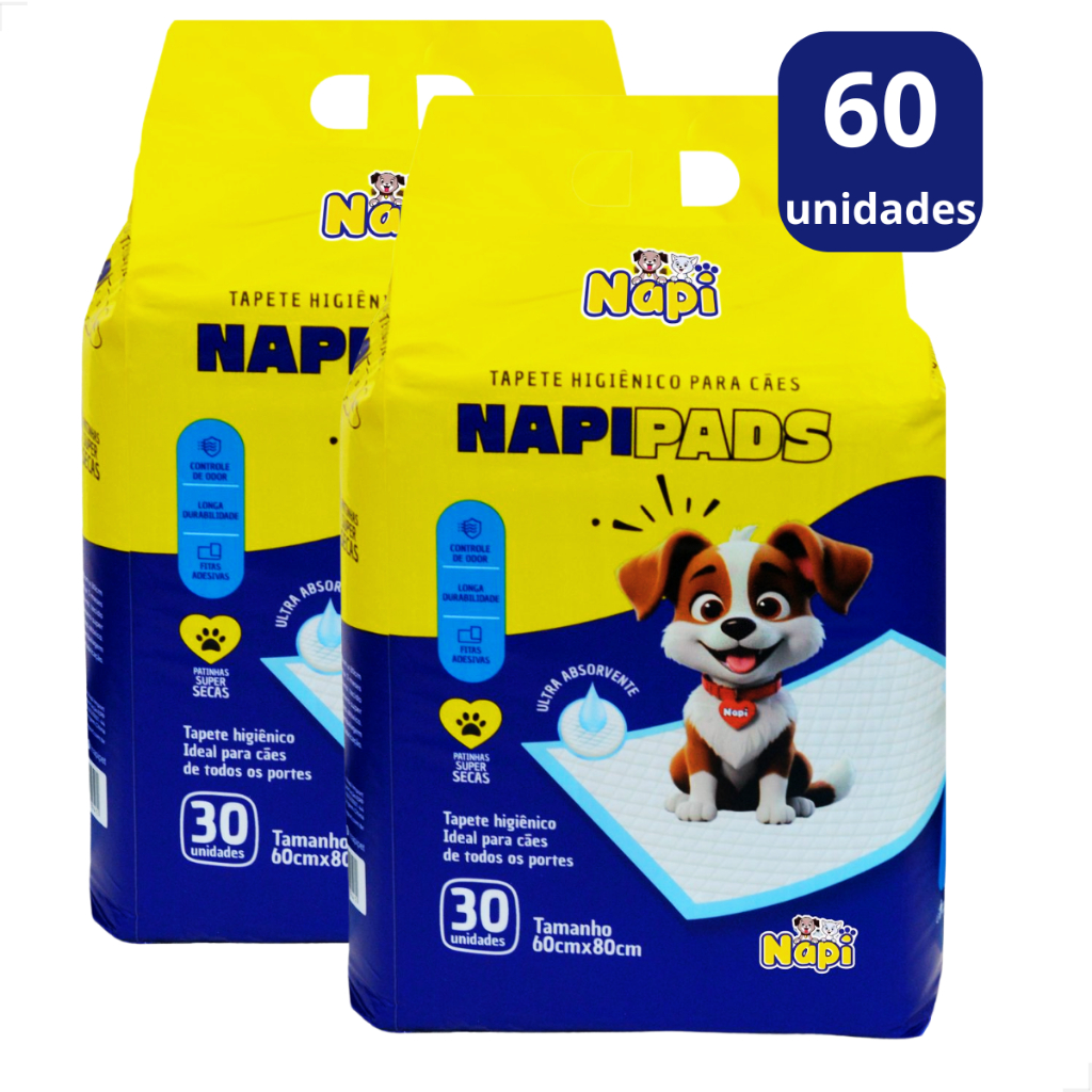 KIT 2 Tapetes Higiênicos 80x60 60 unidades Napi Pads para Cachorro Pets Grande Ultra Absorção
