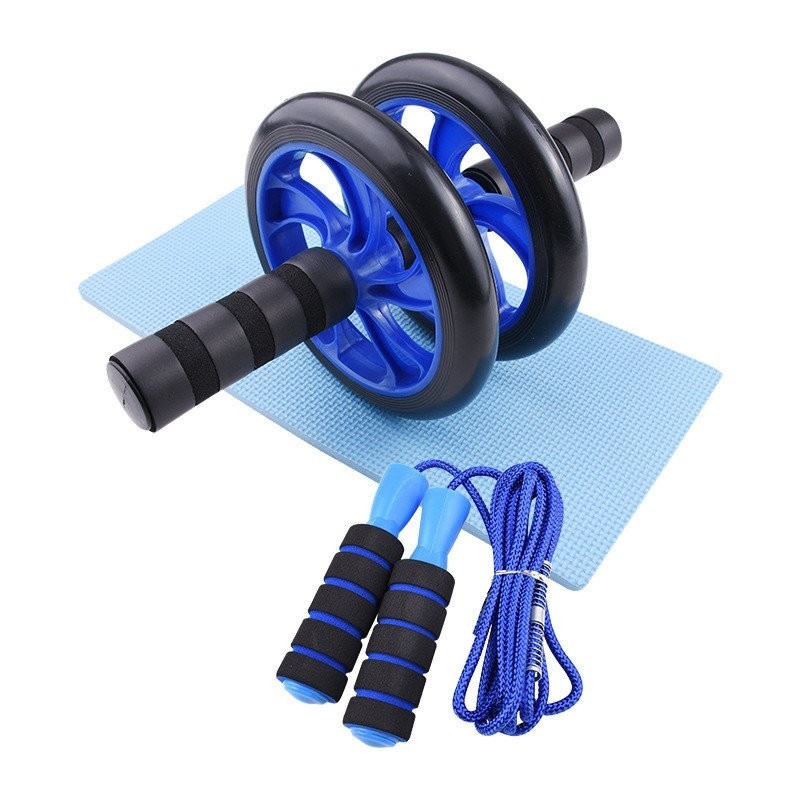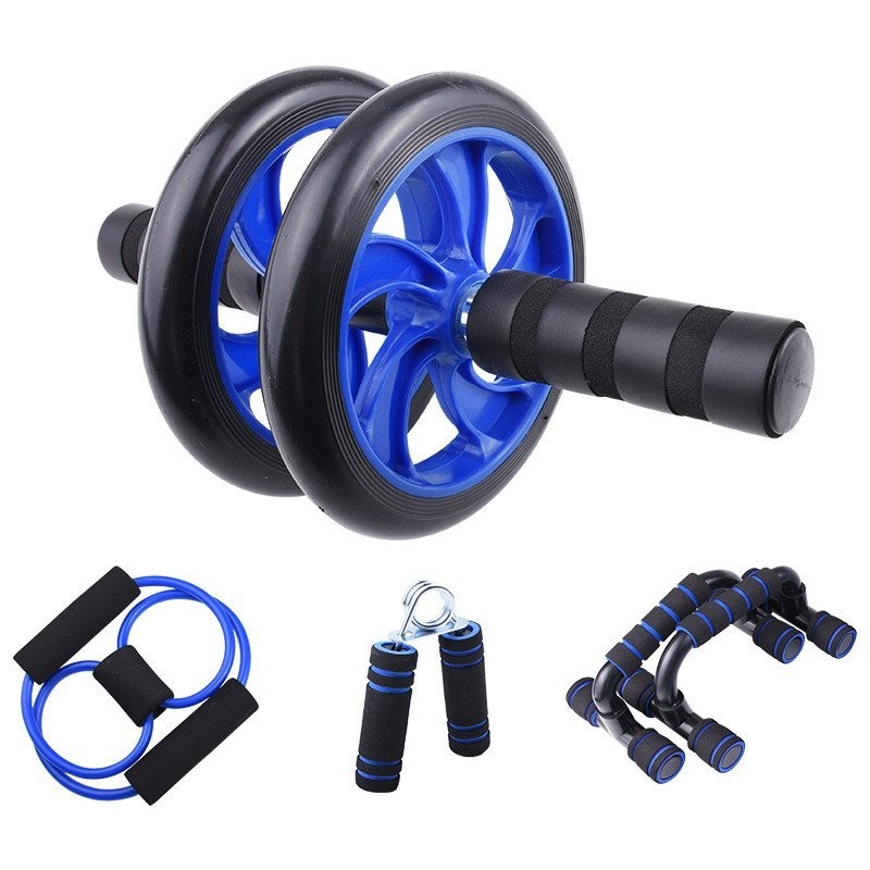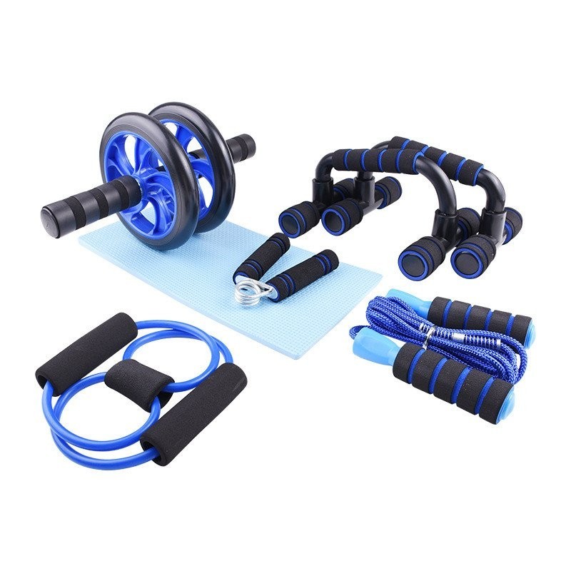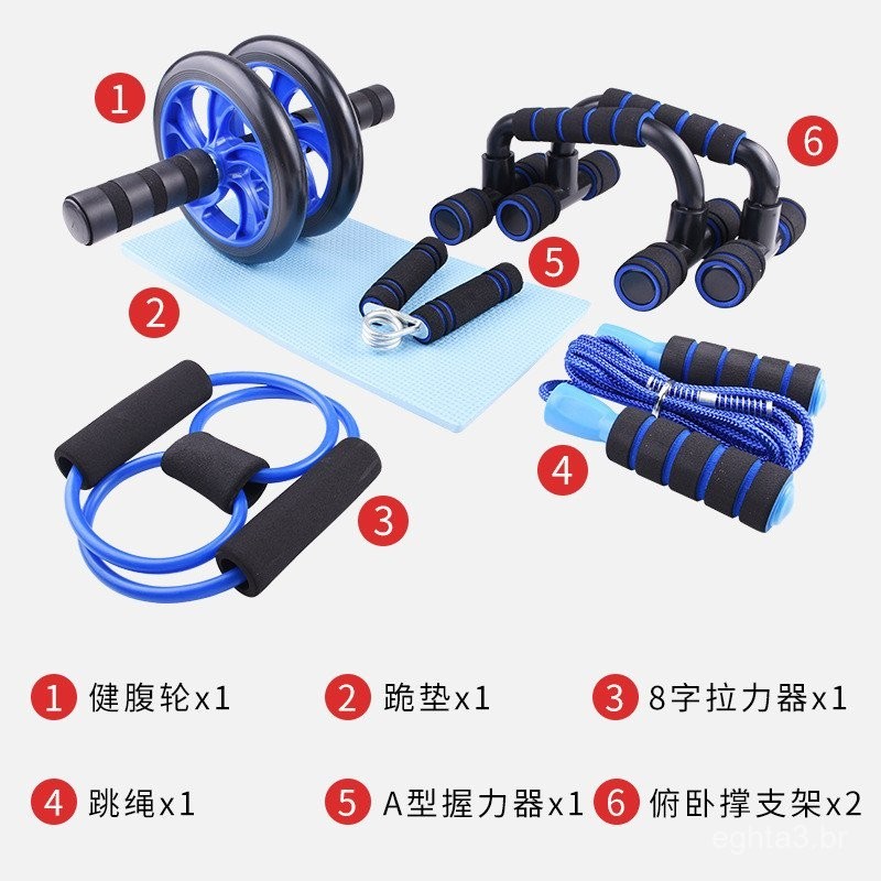 Kit Fitness 6 em 1 Roda Abdominal Flexão Corda Elástico Hand Grip Tapete Treino em Casa