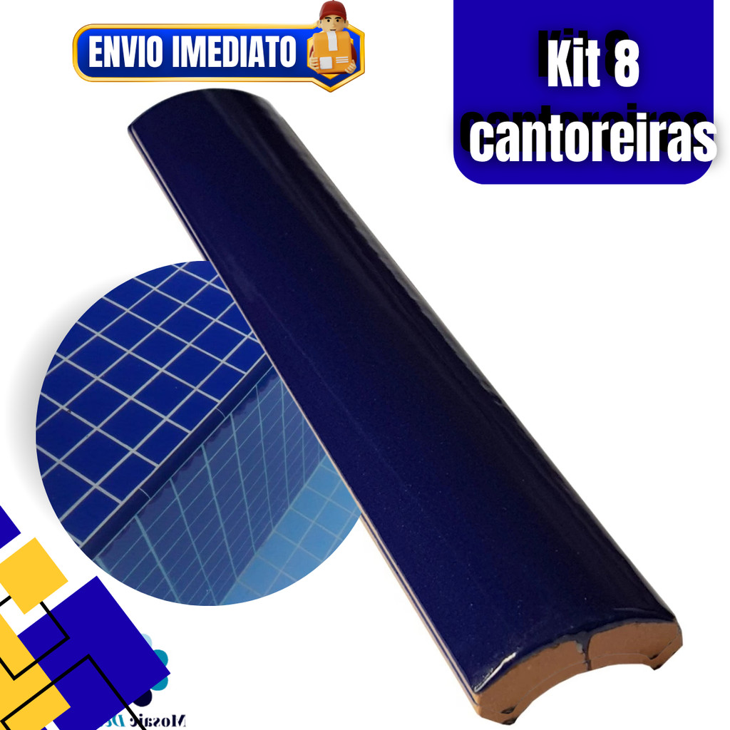 Kit 08 Cantoneiras P/ Piscina 2m Linear 3,5x25cm Azul Pescina