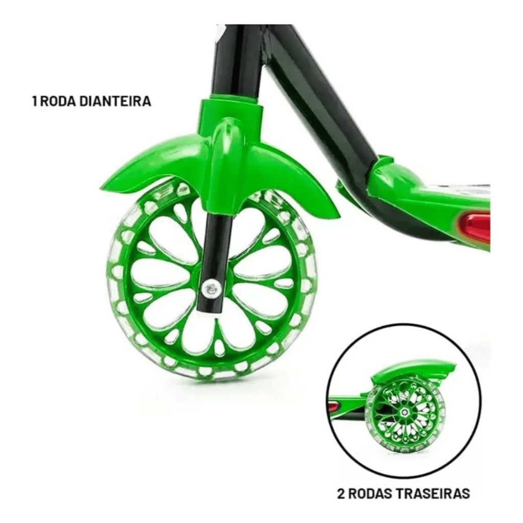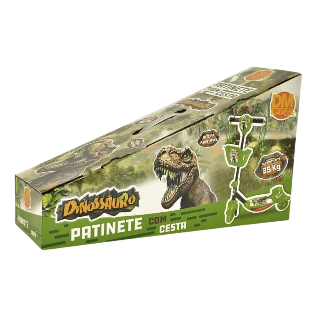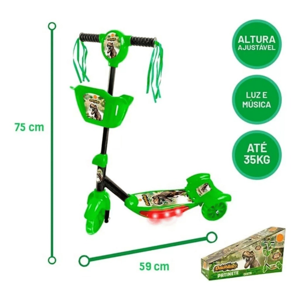 Patinete Infantil Dinossauro Verde Com Cestinha Luz E Som