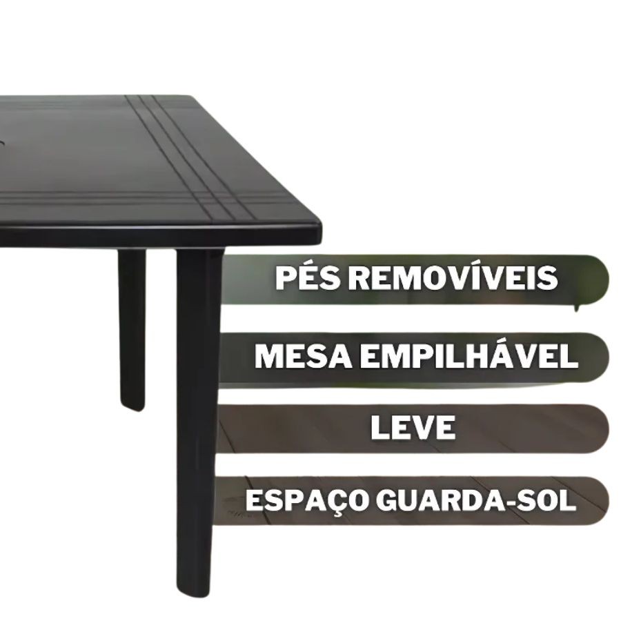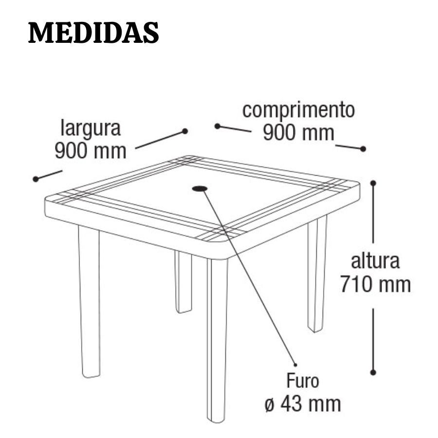 Mesa Desmontável Quadrada Resistente Arqplast 90omm x 900mm x 710mm Preta