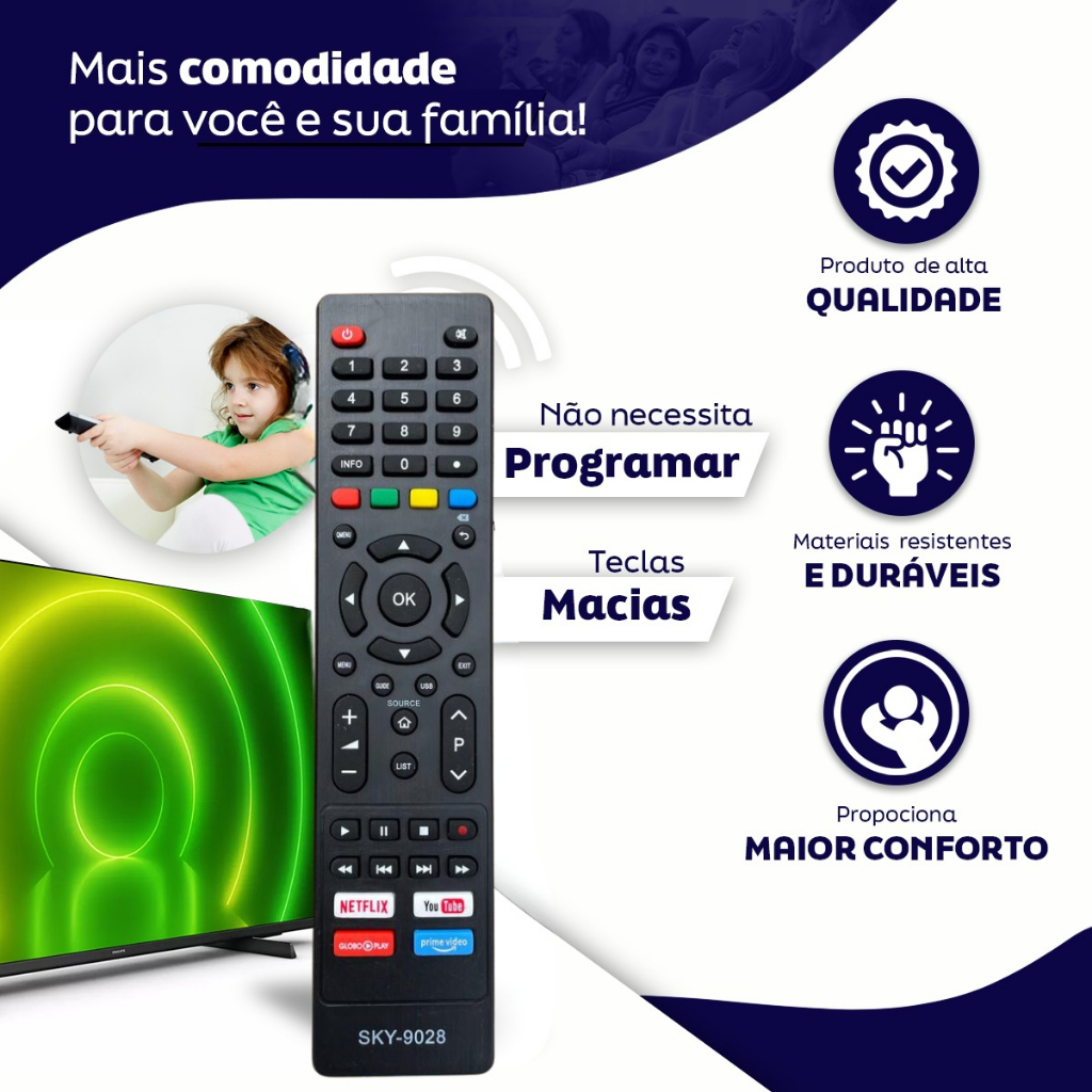 Controle Remoto Para Tv Philco Smart Tecla Netflix Globoplay Youtube Prime