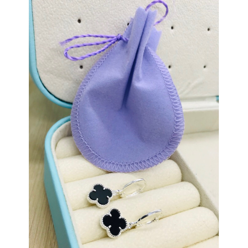 Brinco Trevo Preto blogueira prata925 +saquinho de veludo