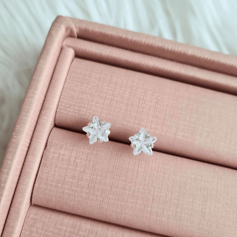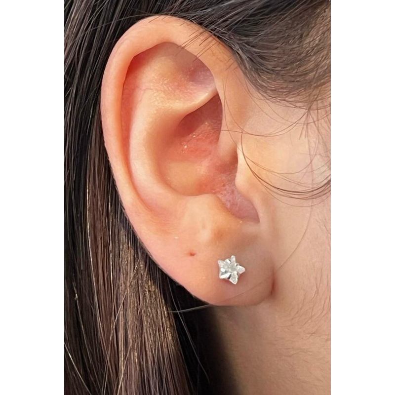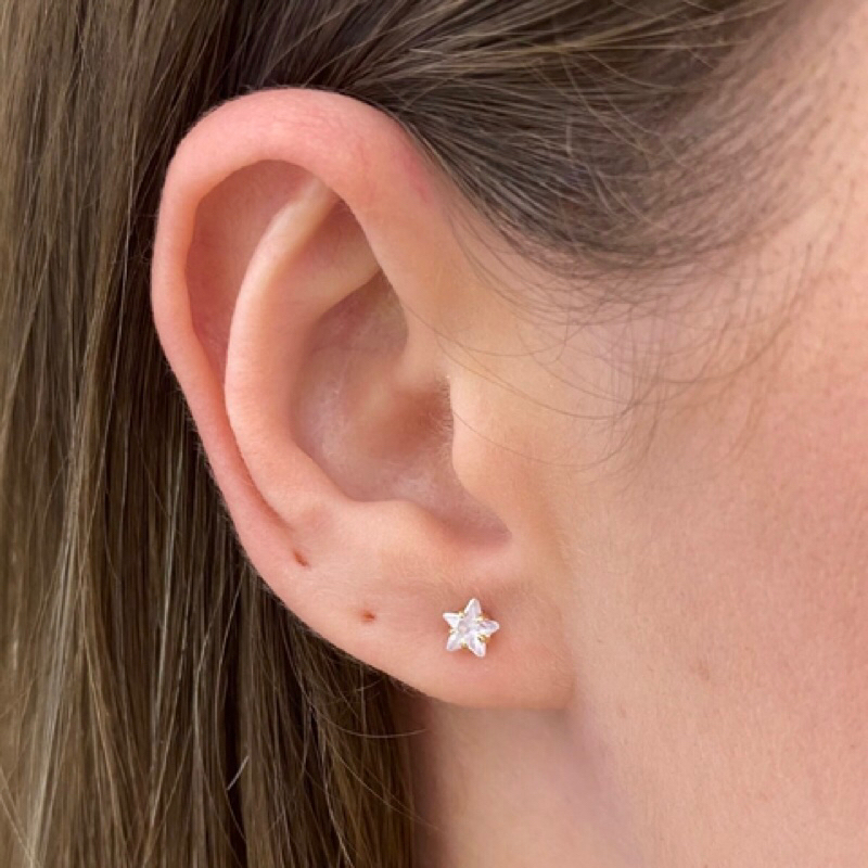 Brinco infantil bebê 4mm estrela zircônia tarraxa baby + saquinho de veludo _prata925