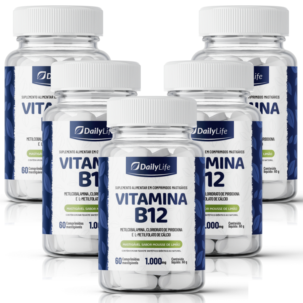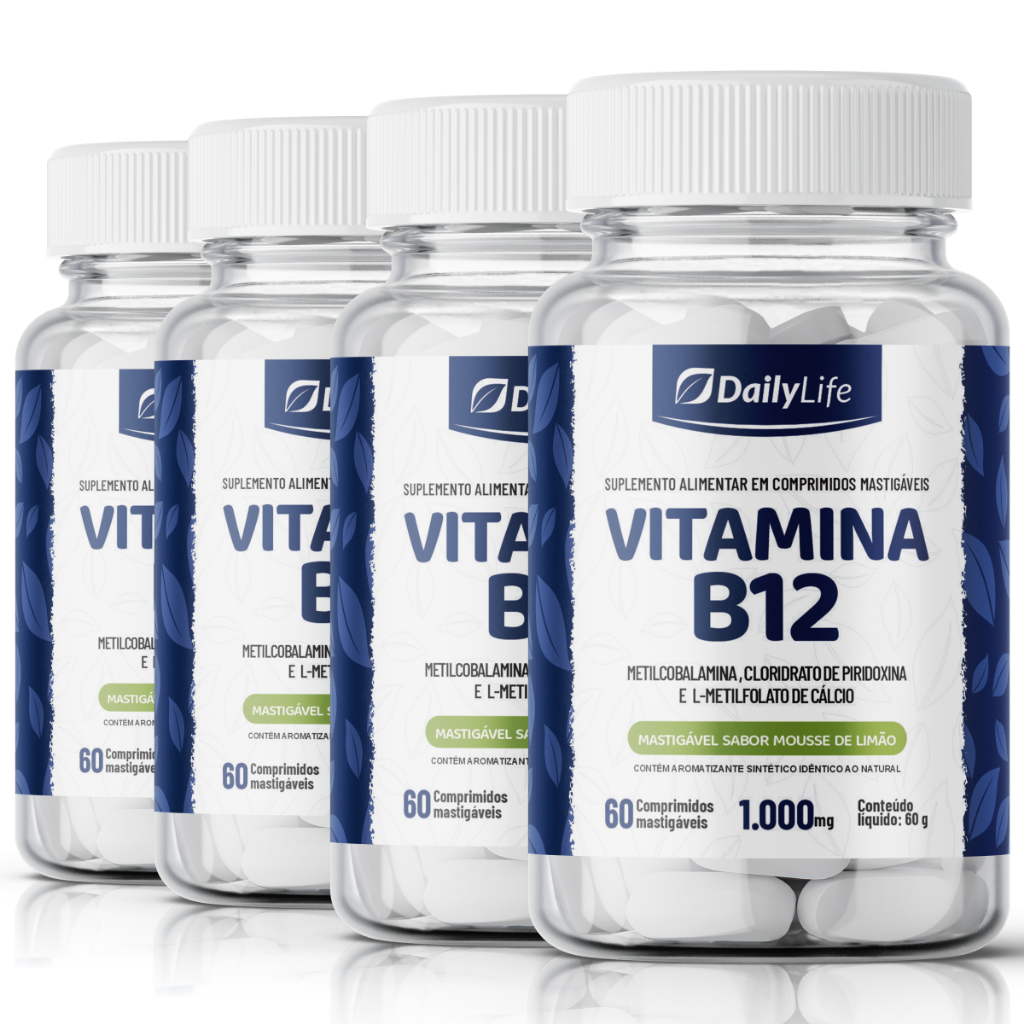 Vitamina B12 Metilcobalamina Mastigável/Sublingual Energia e Bem-estar Sabor Mousse de Limão
