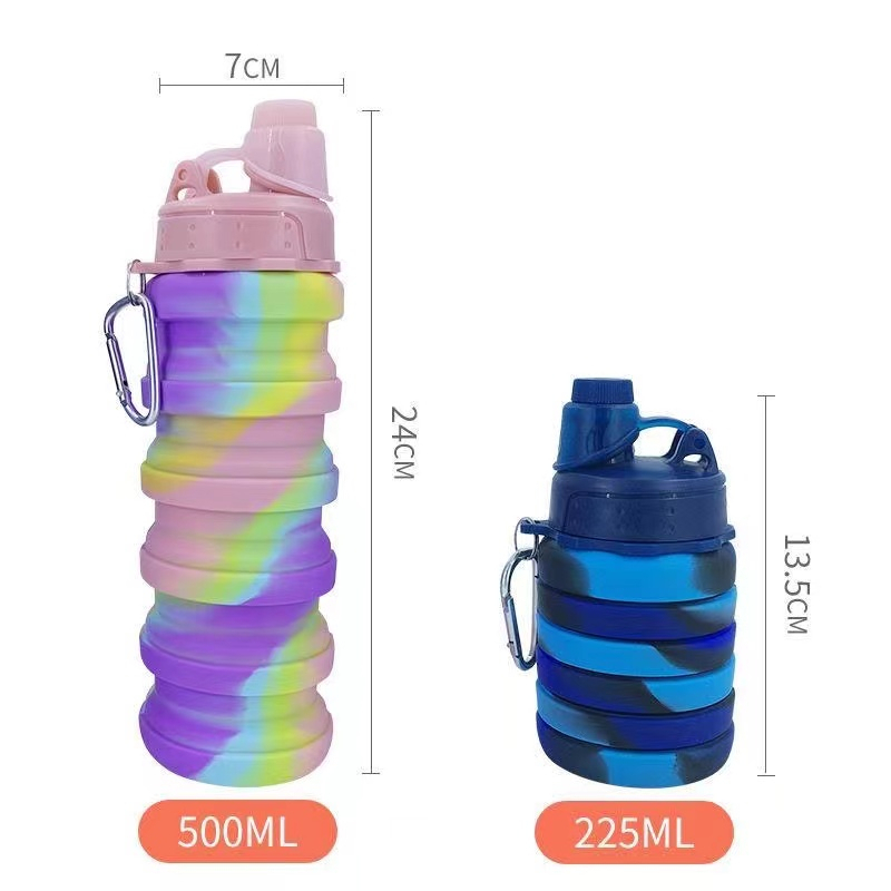 Garrafa Silicone Retrátil Dobrável Portátil De 250ml A 500ml Colorida