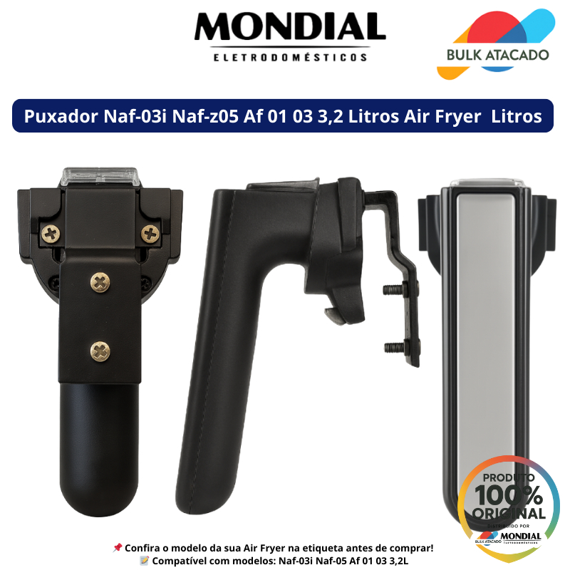Alça Puxador Air Fryer NAF 03 NAF 05 3,2 Litros Preto Original - Para Cesto Redondo