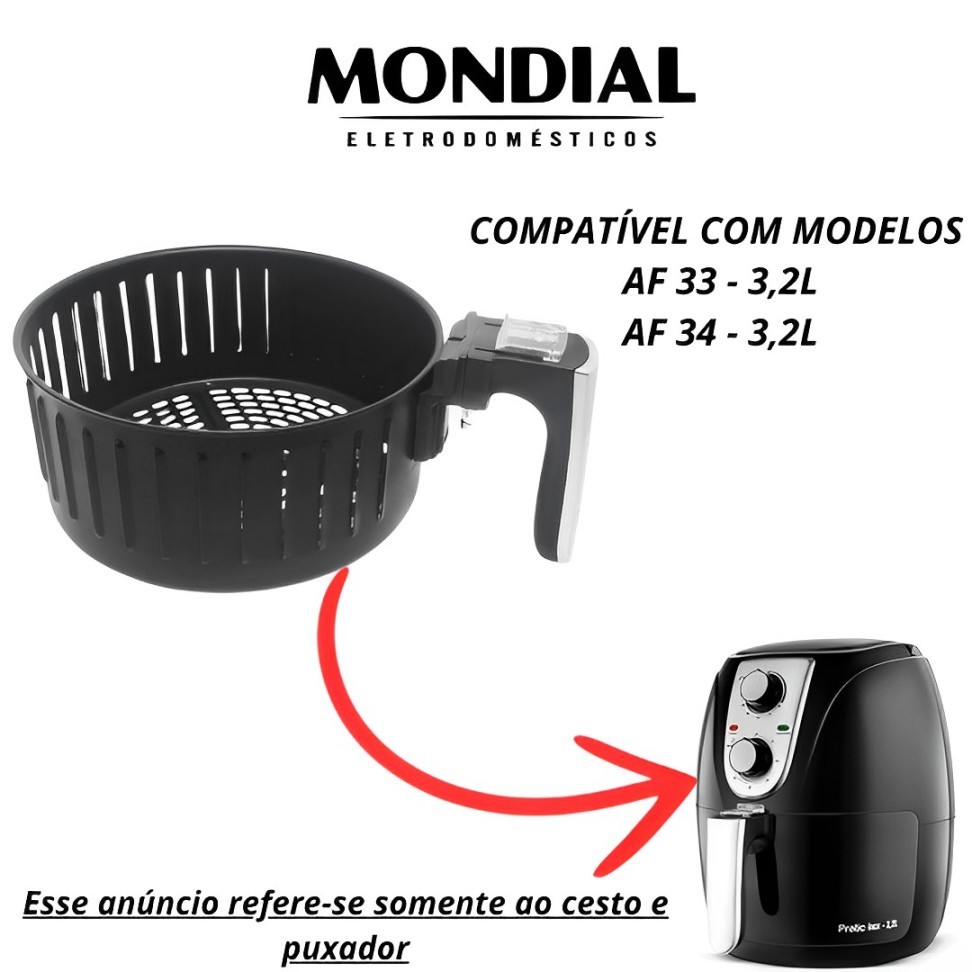 Kit Puxador Air Fryer Mondial Com Cesto da Fritadeira Modelo AF-33 AF-34 Original